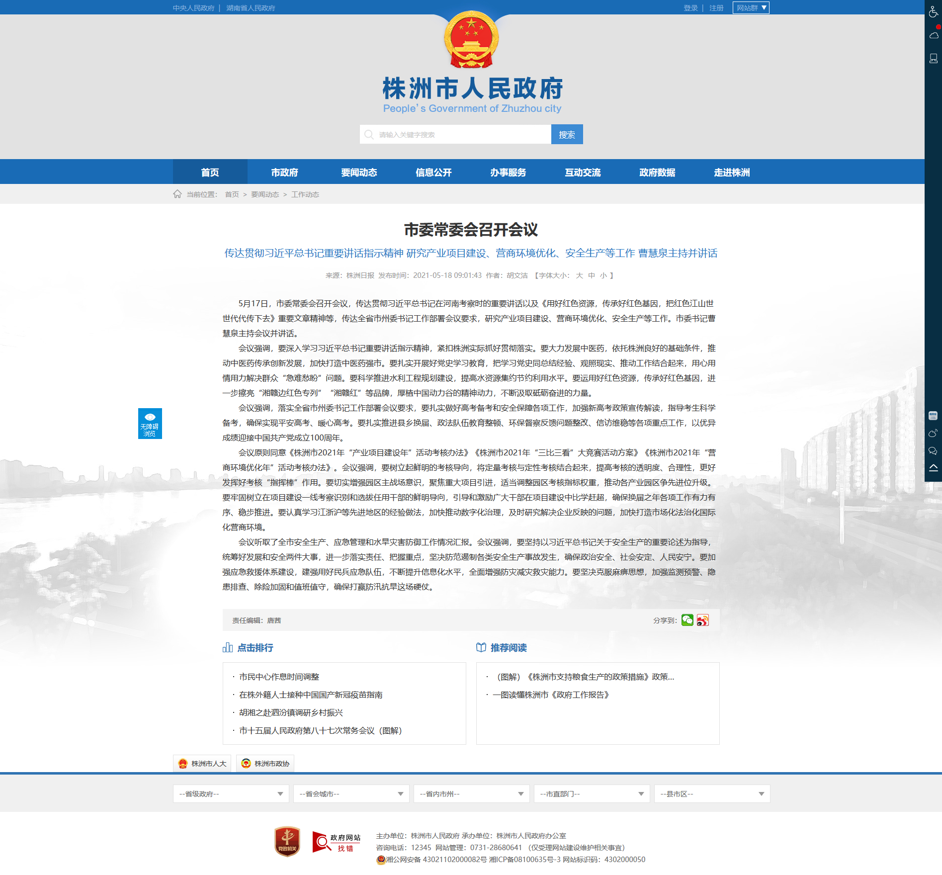 会议强调,要深入学习习近平总书记重要讲话指示精神,紧扣株洲实际抓好贯彻落实。要大力发展中医药,依托株洲良好的基础条件,推动中医药传承创新发展,加快打造中医药强市。要扎实开展好党史学习教育,把学习党史同总结经验、观照现实、推动工作结合起来,用心用情用力解决群众“急难愁盼”问题。要科学推进水利工程规划建设,提高水资源集约节约利用水平。要运用好红色资源,传承好红色基因,进一步擦亮“湘赣边红色专列”“湘赣红”等品牌,厚植中国动力谷的精神动力,不断汲取砥砺奋进的力量。
