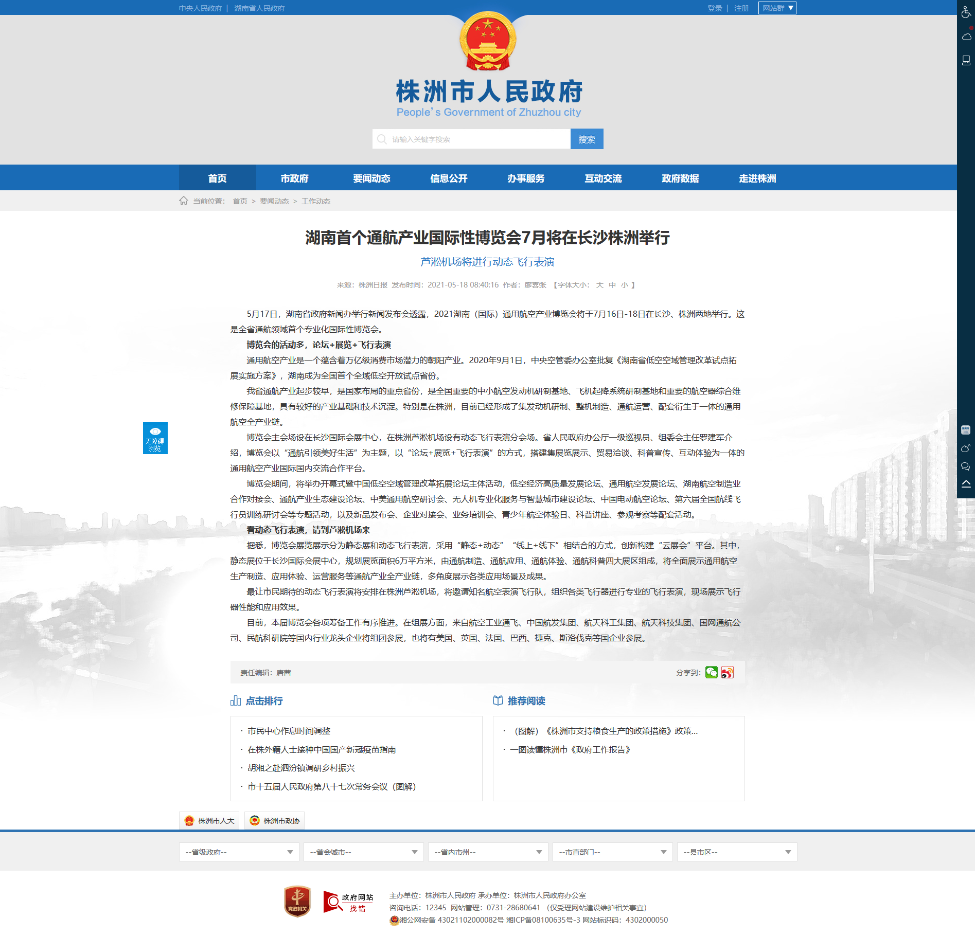 5月17日,湖南省政府新闻办举行新闻发布会透露,2021湖南(国际)通用航空产业博览会将于7月16日-18日在长沙、株洲两地举行。这是全省通航领域首个专业化国际性博览会。