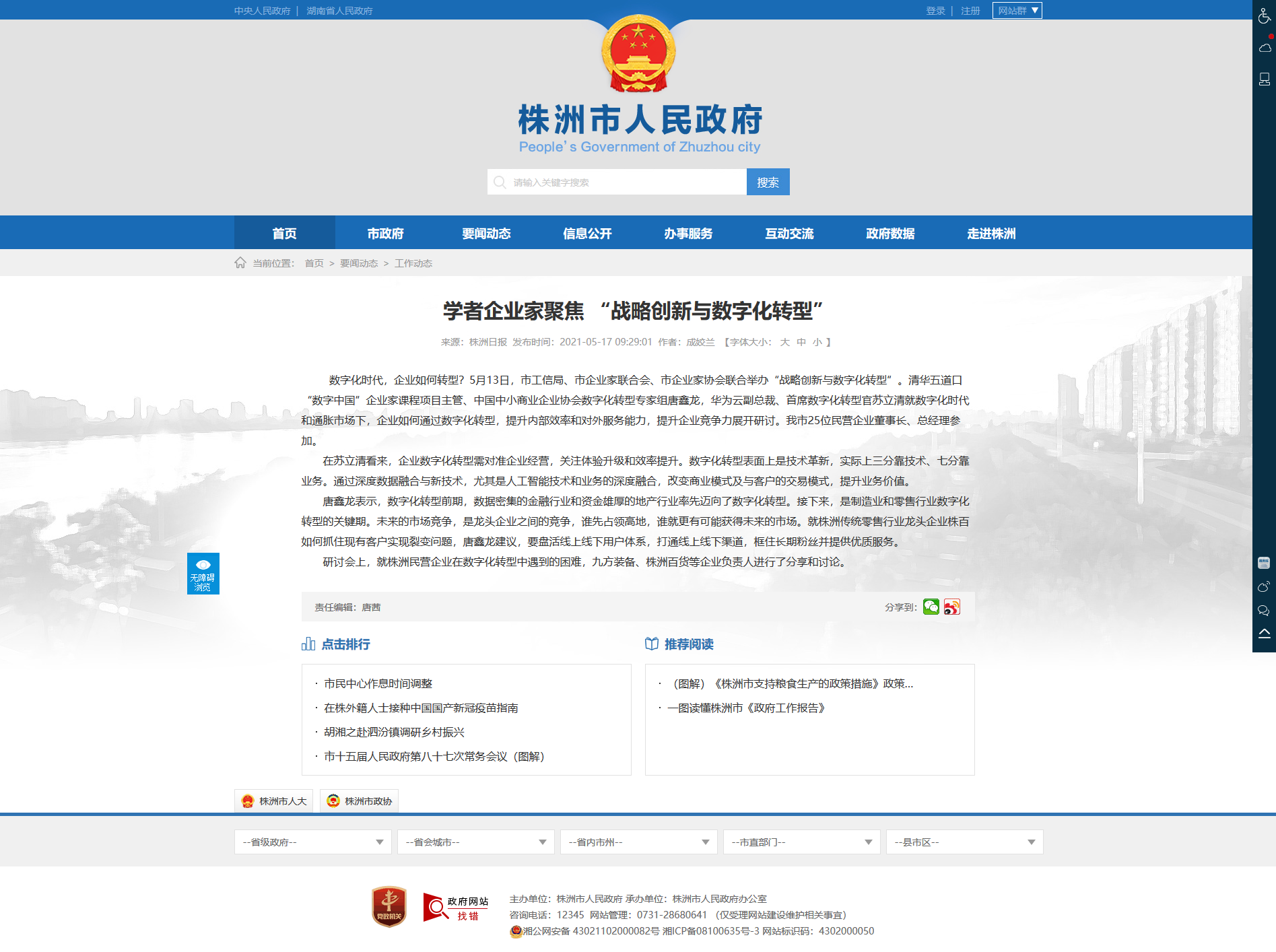 数字化时代,企业如何转型?5月13日,市工信局、市企业家联合会、市企业家协会联合举办“战略创新与数字化转型”。清华五道口“数字中国”企业家课程项目主管、中国中小商业企业协会数字化转型专家组唐鑫龙,华为云副总裁、首席数字化转型官苏立清就数字化时代和通胀市场下,企业如何通过数字化转型,提升内部效率和对外服务能力,提升企业竞争力展开研讨。我市25位民营企业董事长、总经理参加。