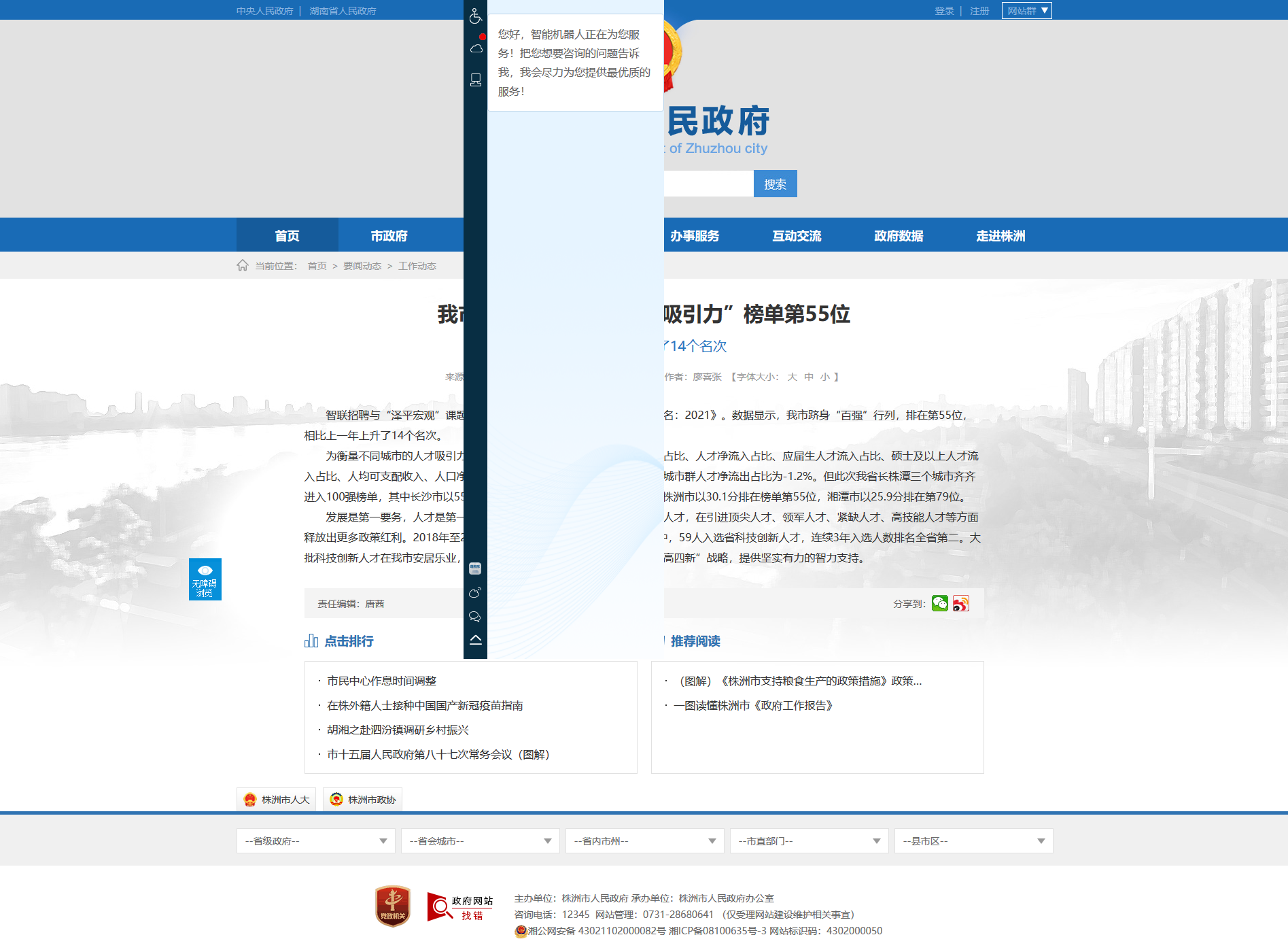 为衡量不同城市的人才吸引力,课题组定义人才吸引力指数为人才流入占比、人才净流入占比、应届生人才流入占比、硕士及以上人才流入占比、人均可支配收入、人口净流入的加权结果。分城市群看,长江中游城市群人才净流出占比为-1.2%。但此次我省长株潭三个城市齐齐进入100强榜单,其中长沙市以55.8分的人才吸引力指数排在榜单第10位,株洲市以30.1分排在榜单第55位,湘潭市以25.9分排在第79位。