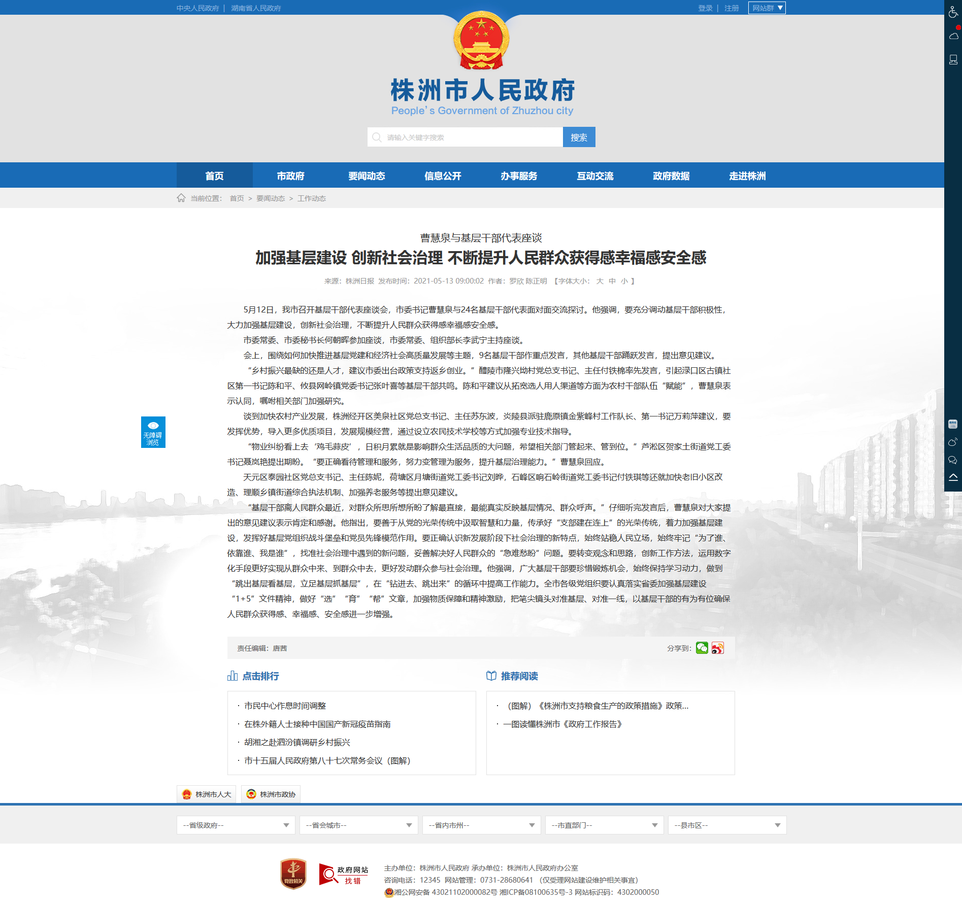 5月12日,我市召开基层干部代表座谈会,市委书记曹慧泉与24名基层干部代表面对面交流探讨。他强调,要充分调动基层干部积极性,大力加强基层建设,创新社会治理,不断提升人民群众获得感幸福感安全感。