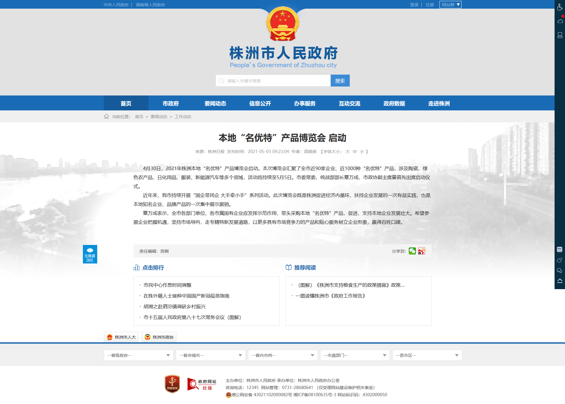 4月30日,2021年株洲本地“名优特”产品博览会启动。本次博览会汇聚了全市近90家企业、近1000种“名优特”产品,涉及陶瓷、绿色农产品、日化用品、服装、新能源汽车等多个领域,活动将持续至5月5日。市委常委、统战部部长覃万成,市政协副主席晏首先出席启动仪式。