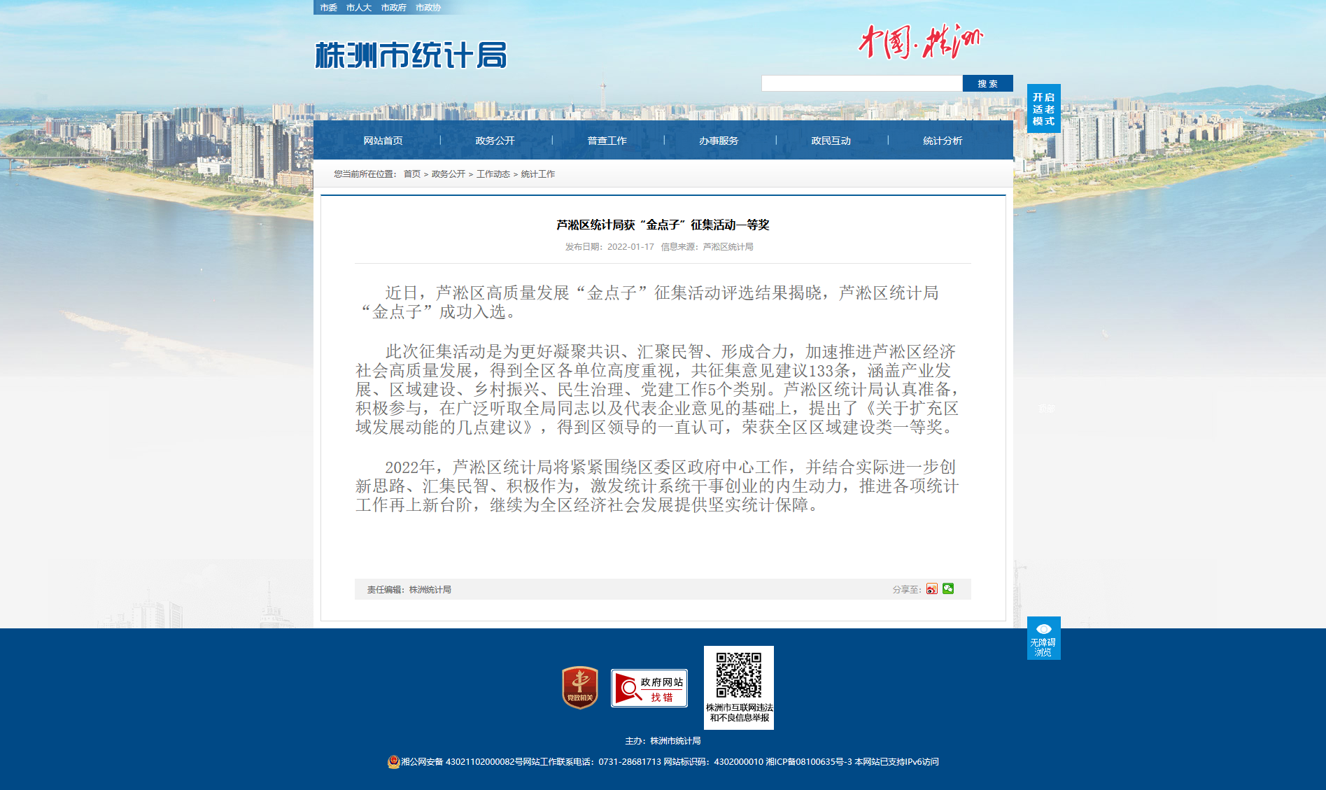 近日,芦淞区高质量发展“金点子”征集活动评选结果揭晓,芦淞区统计局“金点子”成功入选。