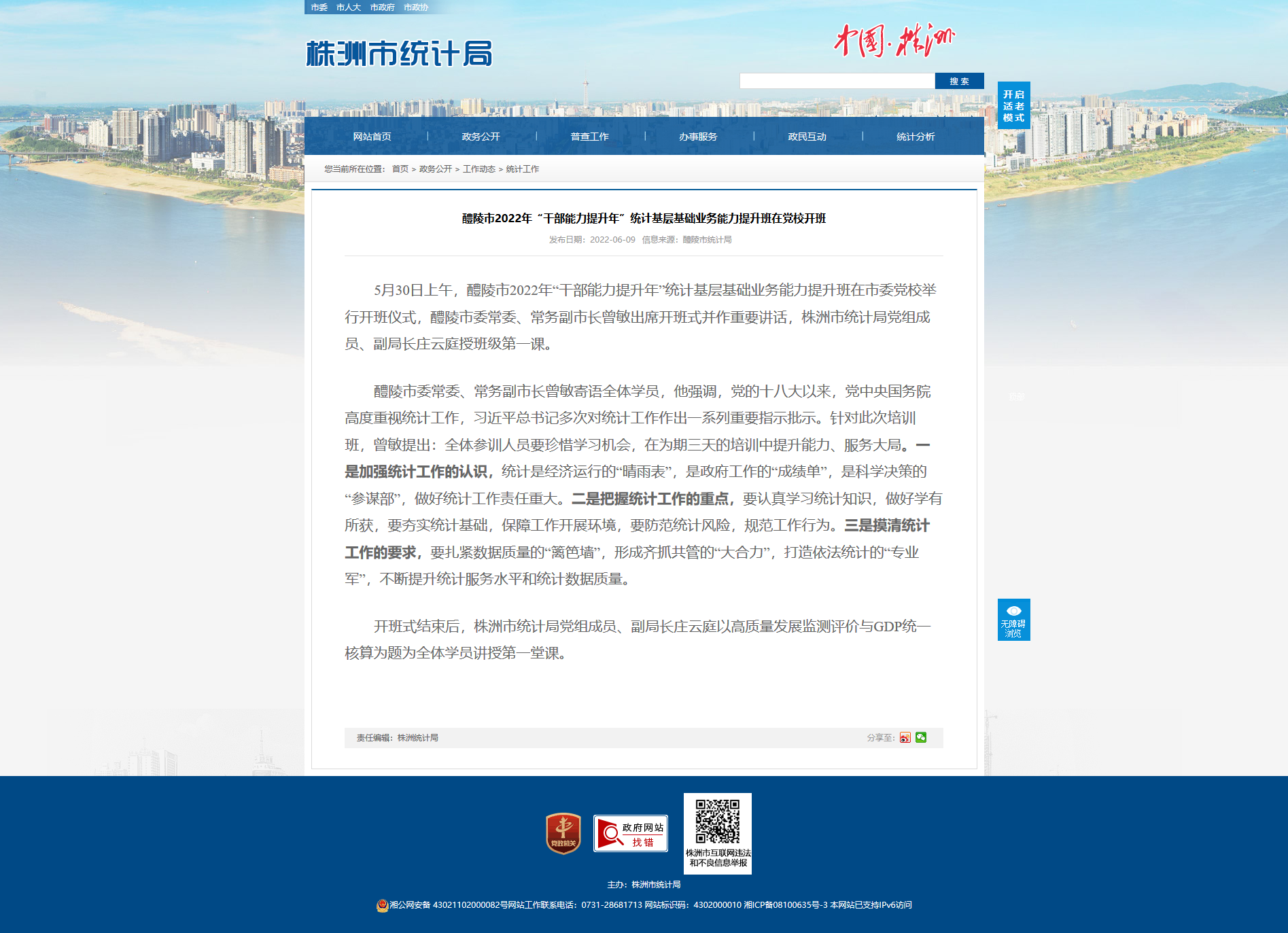 5月30日上午,醴陵市2022年“干部能力提升年”统计基层基础业务能力提升班在市委党校举行开班仪式,醴陵市委常委、常务副市长曾敏出席开班式并作重要讲话,株洲市统计局党组成员、副局长庄云庭授班级第一课。