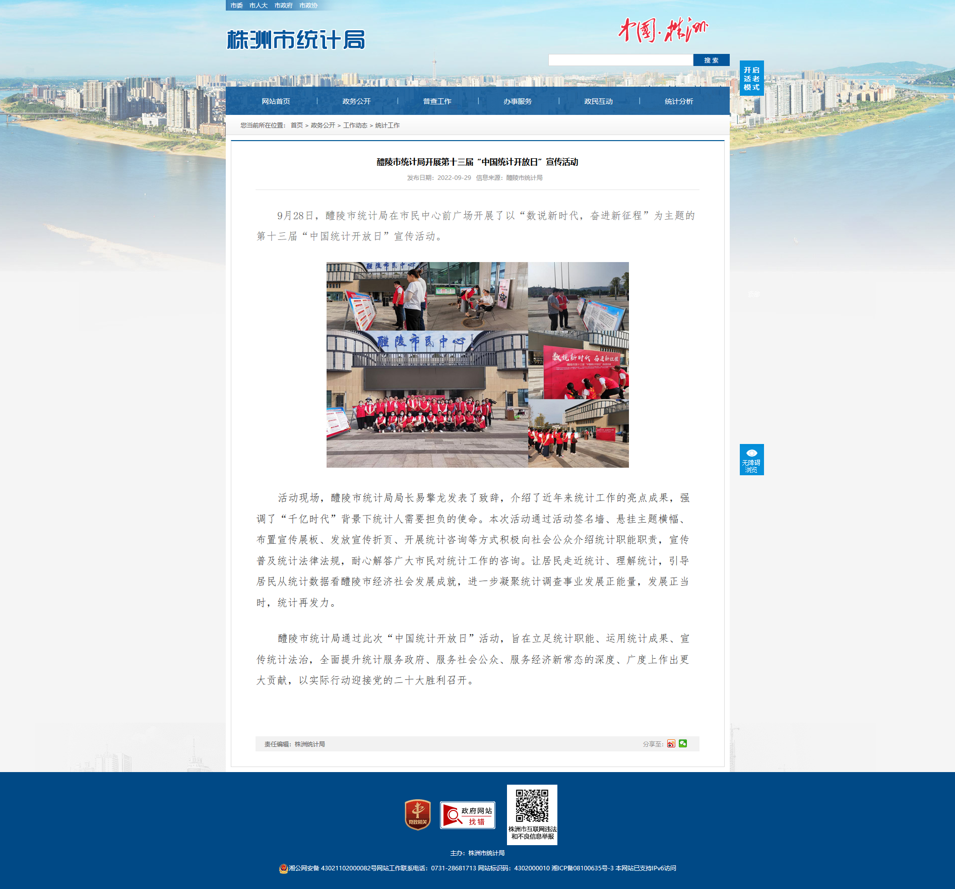 醴陵市统计局通过此次“中国统计开放日”活动,旨在立足统计职能、运用统计成果、宣传统计法治,全面提升统计服务政府、服务社会公众、服务经济新常态的深度、广度上作出更大贡献,以实际行动迎接党的二十大胜利召开。
