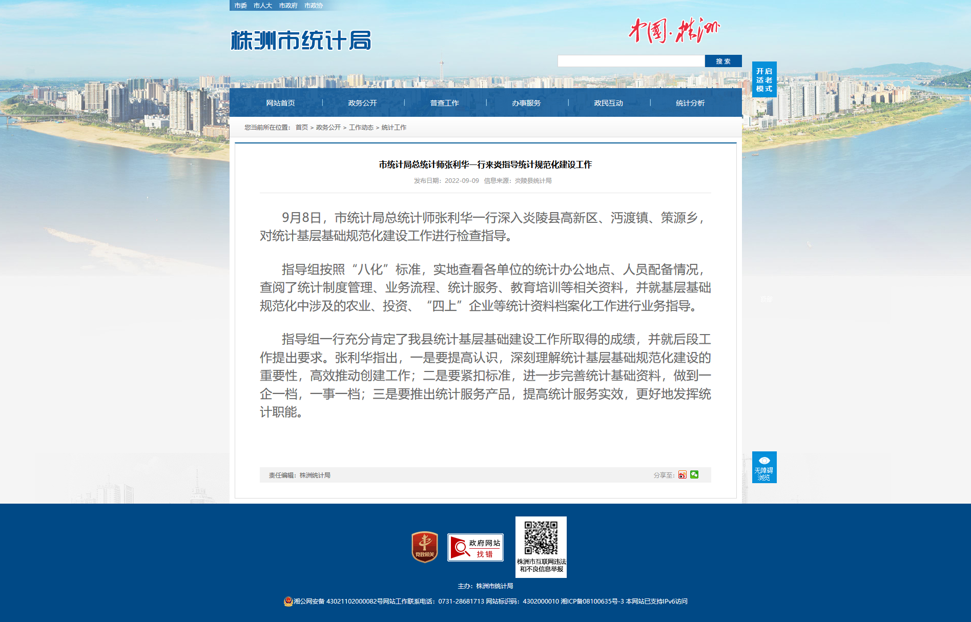 9月8日,市统计局总统计师张利华一行深入炎陵县高新区、沔渡镇、策源乡,对统计基层基础规范化建设工作进行检查指导。