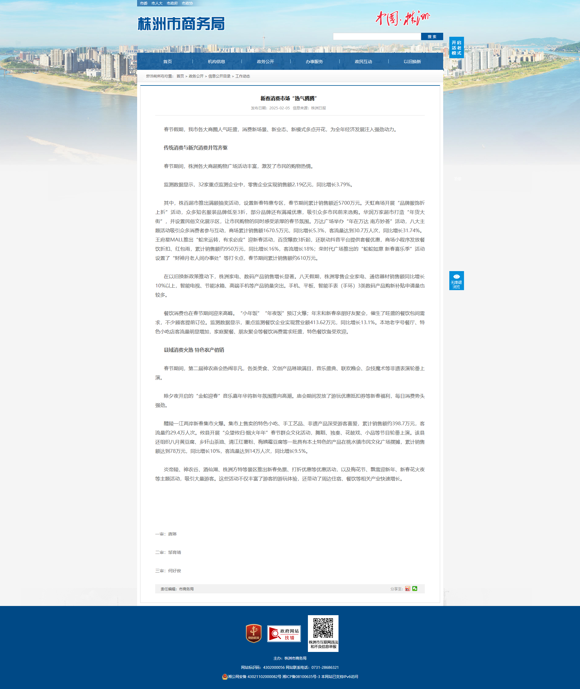 醴陵一江两岸新春集市火爆。集市上售卖的特色小吃、手工艺品、非遗产品深受游客喜爱,累计销售额约398.7万元,客流量约29.4万人次。攸县开展“众望攸归·烟火年年”春节群众文化活动,舞蹈、独奏、花鼓戏、小品等节目轮番上演。该县还组织八月黄豆腐、乡轩山茶油、清江红薯粉、梅姨霉豆腐等一批具有本土特色的产品在桃水镇市民文化广场摆摊,累计销售额达到78万元,同比增长10%,客流量达到14万人次,同比增长9.5%。