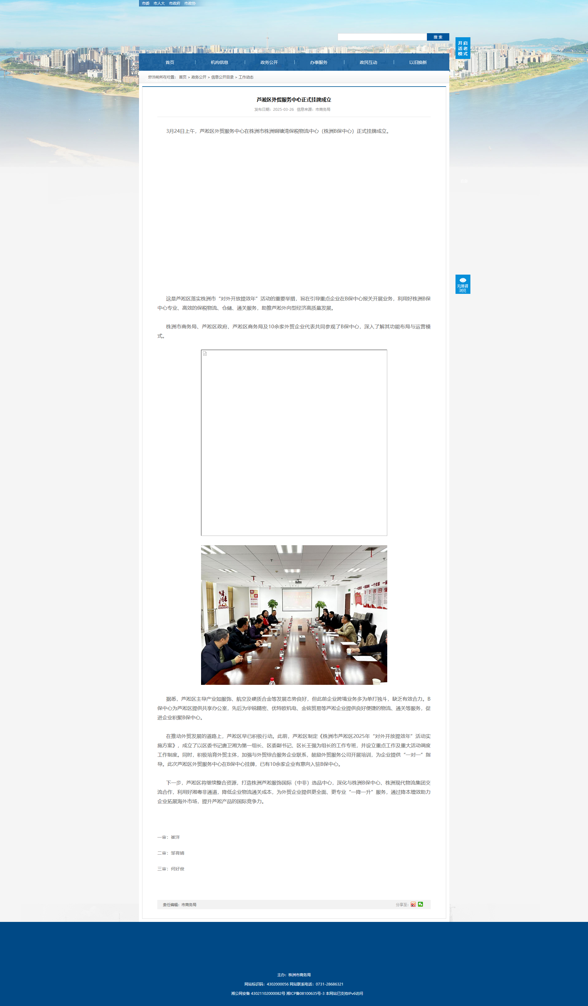 3月24日上午,芦淞区外贸服务中心在株洲市株洲铜塘湾保税物流中心(株洲B保中心)正式挂牌成立。