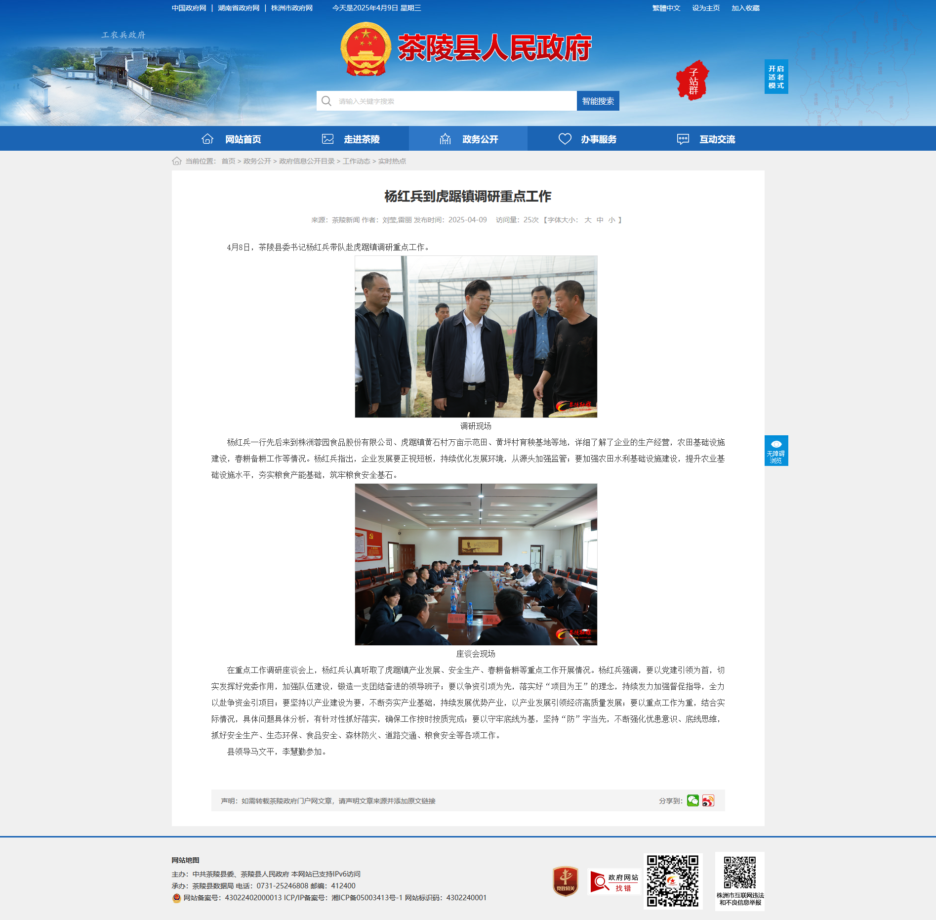 4月8日,茶陵县委书记杨红兵带队赴虎踞镇调研重点工作。