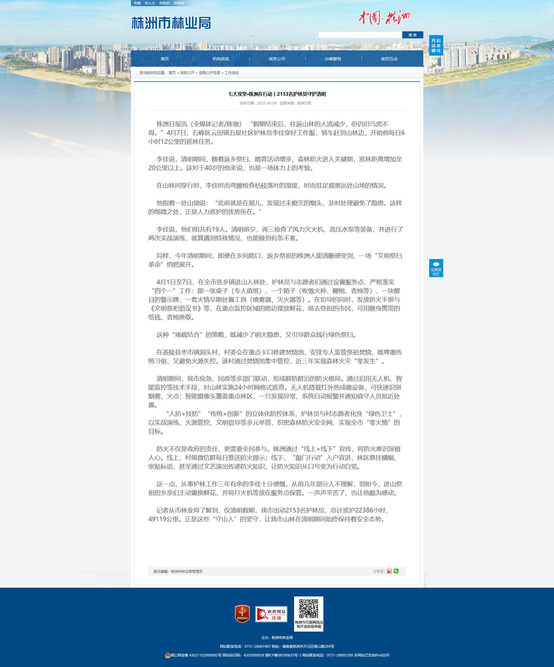 记者从市林业局了解到,仅清明假期,我市出动2153名护林员,总计巡护22386小时、49119公里。正是这些“守山人”的坚守,让我市山林在清明期间始终保持着安全态势。