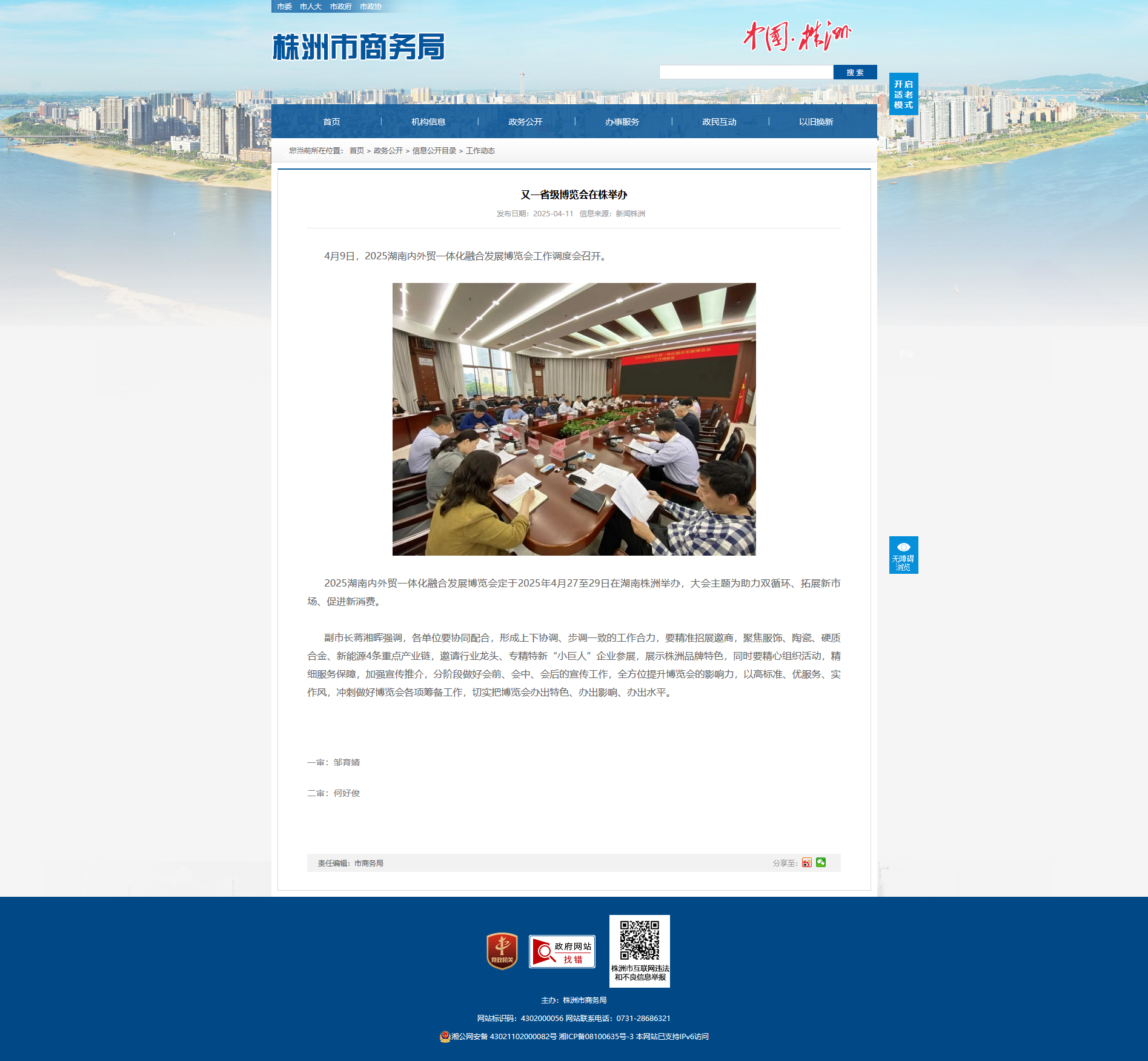 4月9日,2025湖南内外贸一体化融合发展博览会工作调度会召开。