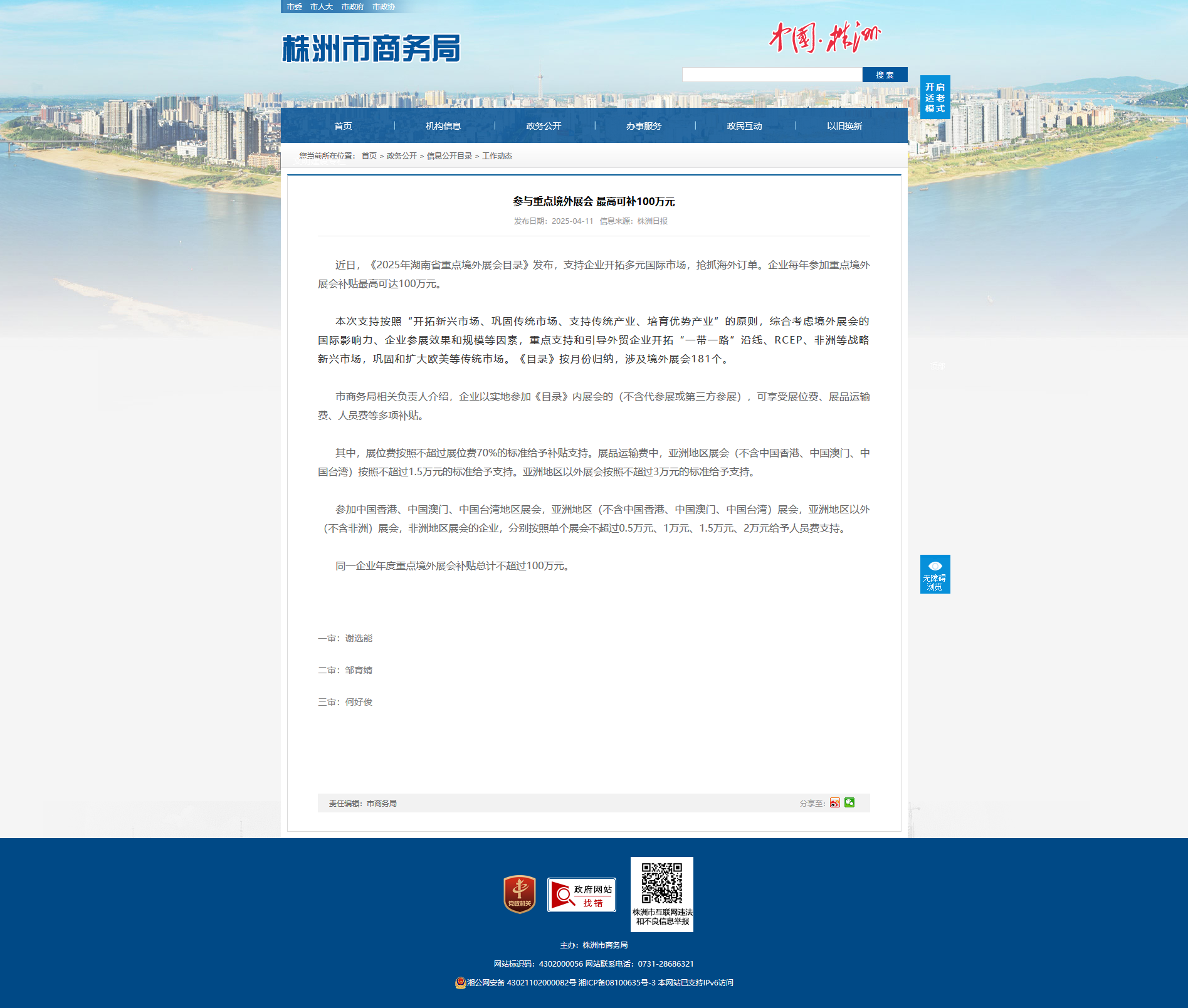 近日,《2025年湖南省重点境外展会目录》发布,支持企业开拓多元国际市场,抢抓海外订单。企业每年参加重点境外展会补贴最高可达100万元。