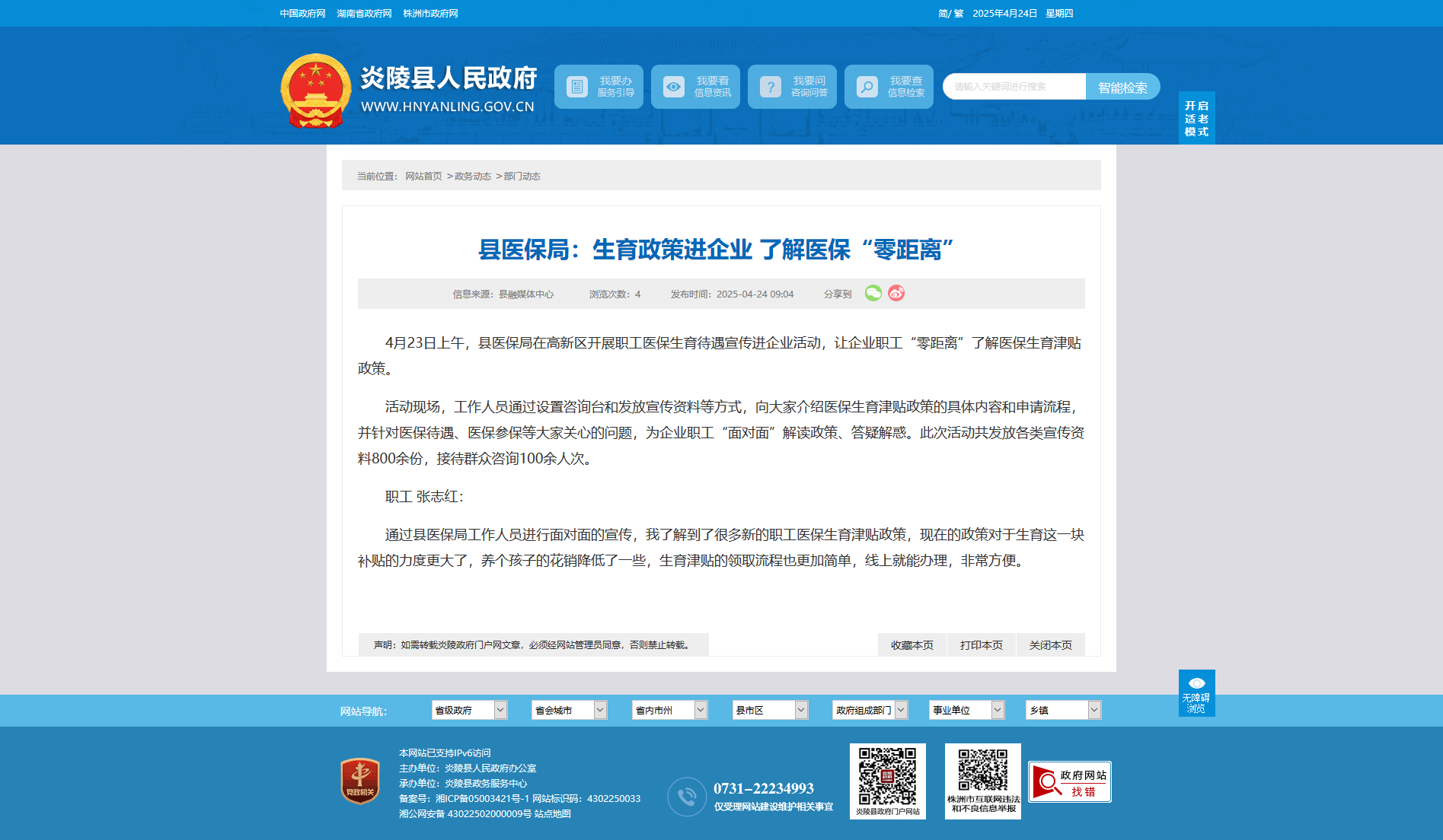 4月23日上午,县医保局在高新区开展职工医保生育待遇宣传进企业活动,让企业职工“零距离”了解医保生育津贴政策。