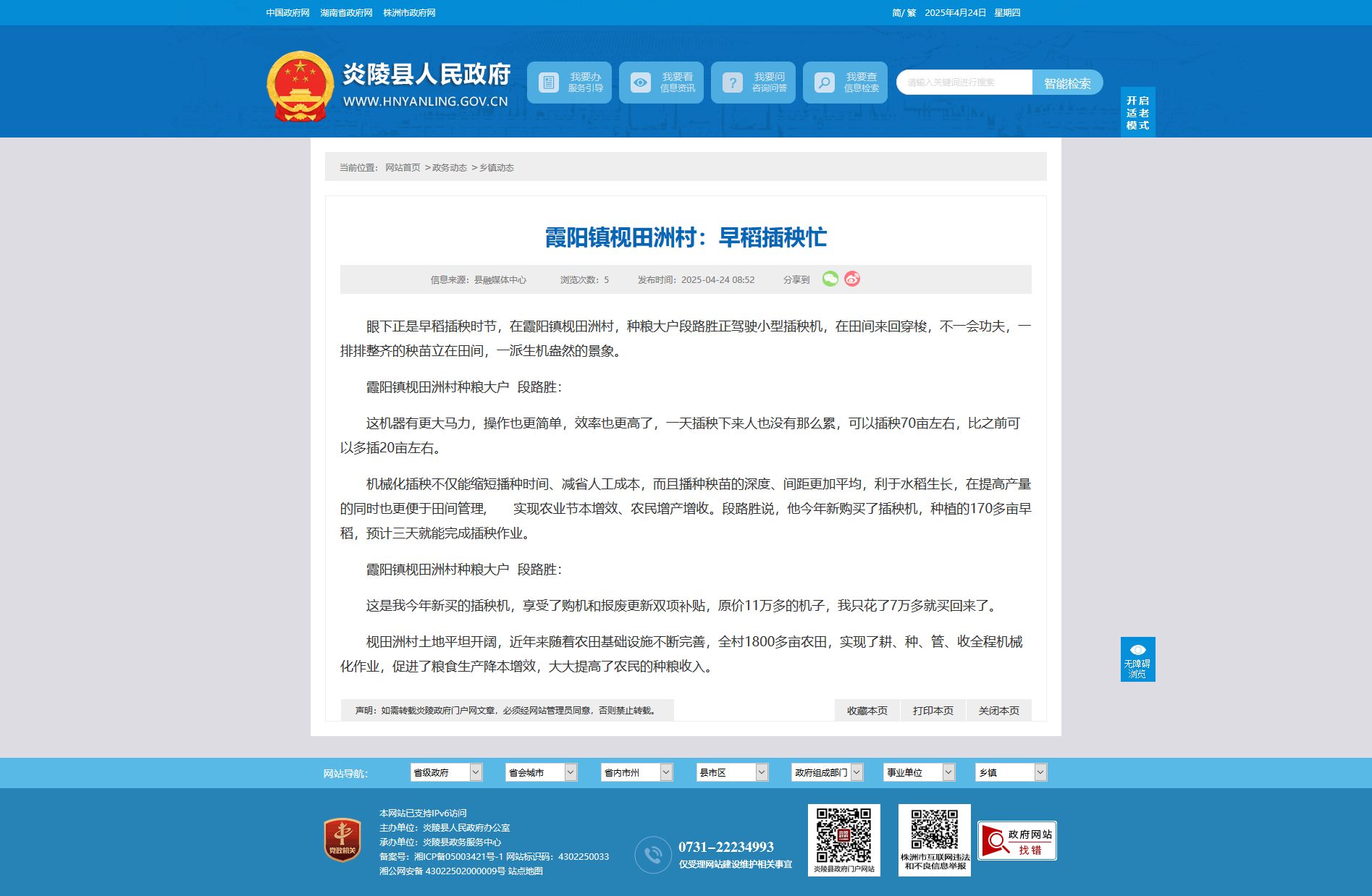 机械化插秧不仅能缩短播种时间、减省人工成本,而且播种秧苗的深度、间距更加平均,利于水稻生长,在提高产量的同时也更便于田间管理, 实现农业节本增效、农民增产增收。段路胜说,他今年新购买了插秧机,种植的170多亩早稻,预计三天就能完成插秧作业。