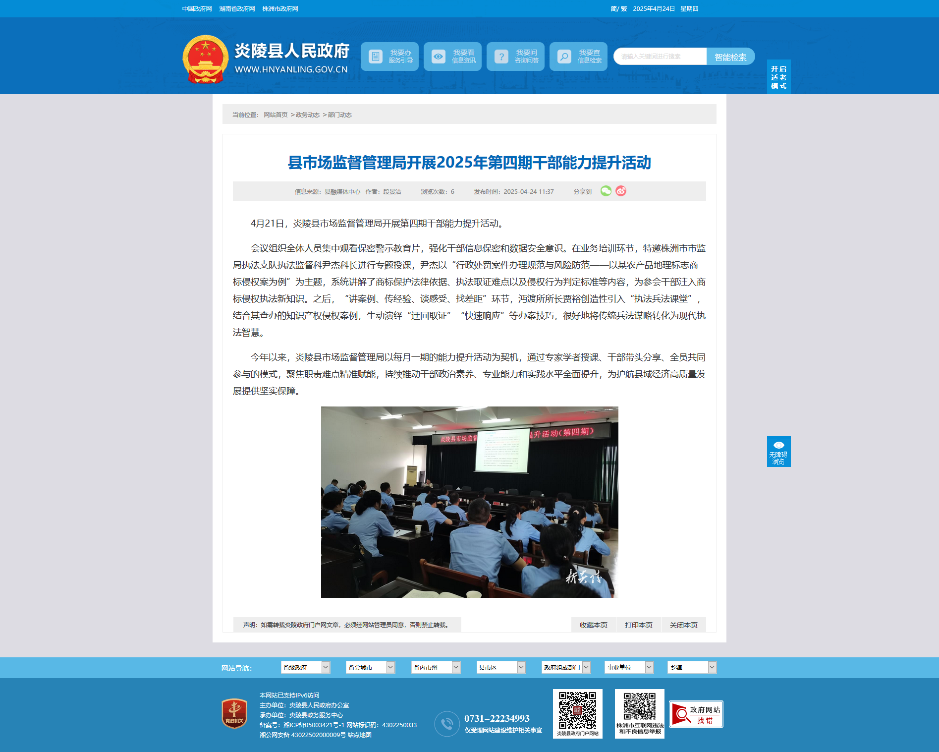 4月21日,炎陵县市场监督管理局开展第四期干部能力提升活动。