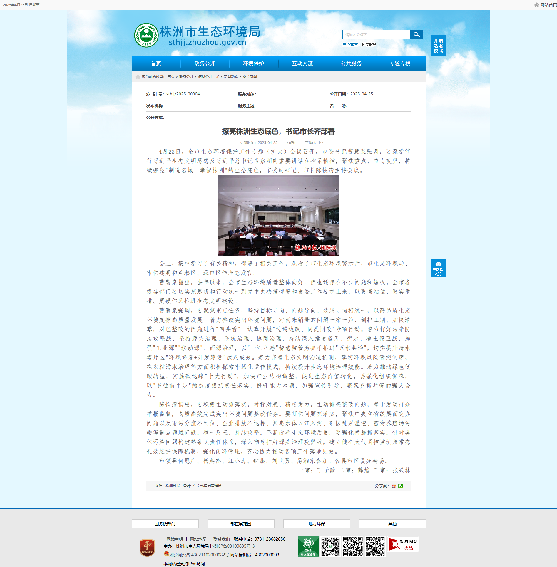 会上,集中学习了有关精神,部署了相关工作,观看了市生态环境警示片,市生态环境局、市住建局和芦淞区、渌口区作表态发言。