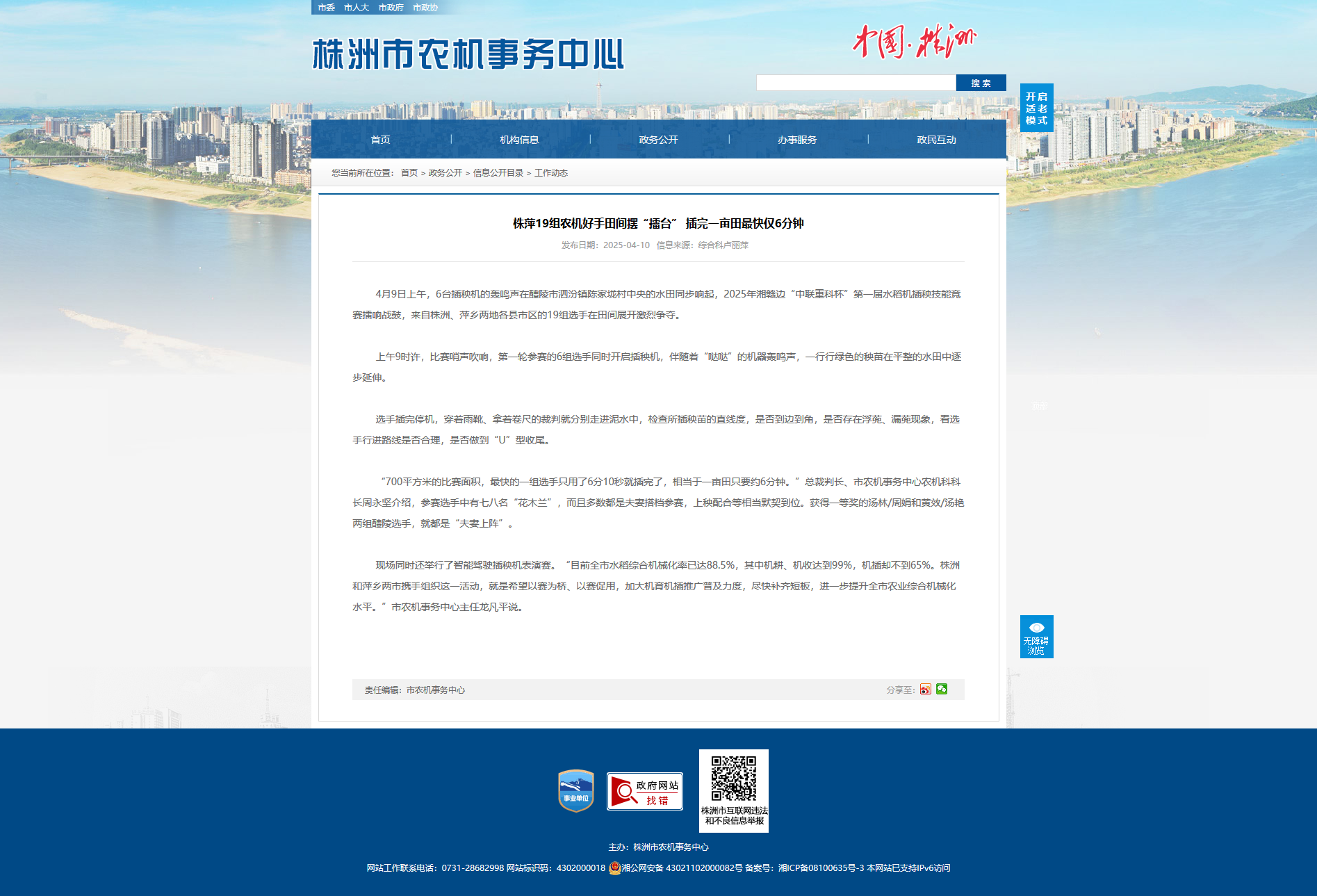 现场同时还举行了智能驾驶插秧机表演赛。“目前全市水稻综合机械化率已达88.5%,其中机耕、机收达到99%,机插却不到65%。株洲和萍乡两市携手组织这一活动,就是希望以赛为桥、以赛促用,加大机育机插推广普及力度,尽快补齐短板,进一步提升全市农业综合机械化水平。”市农机事务中心主任龙凡平说。