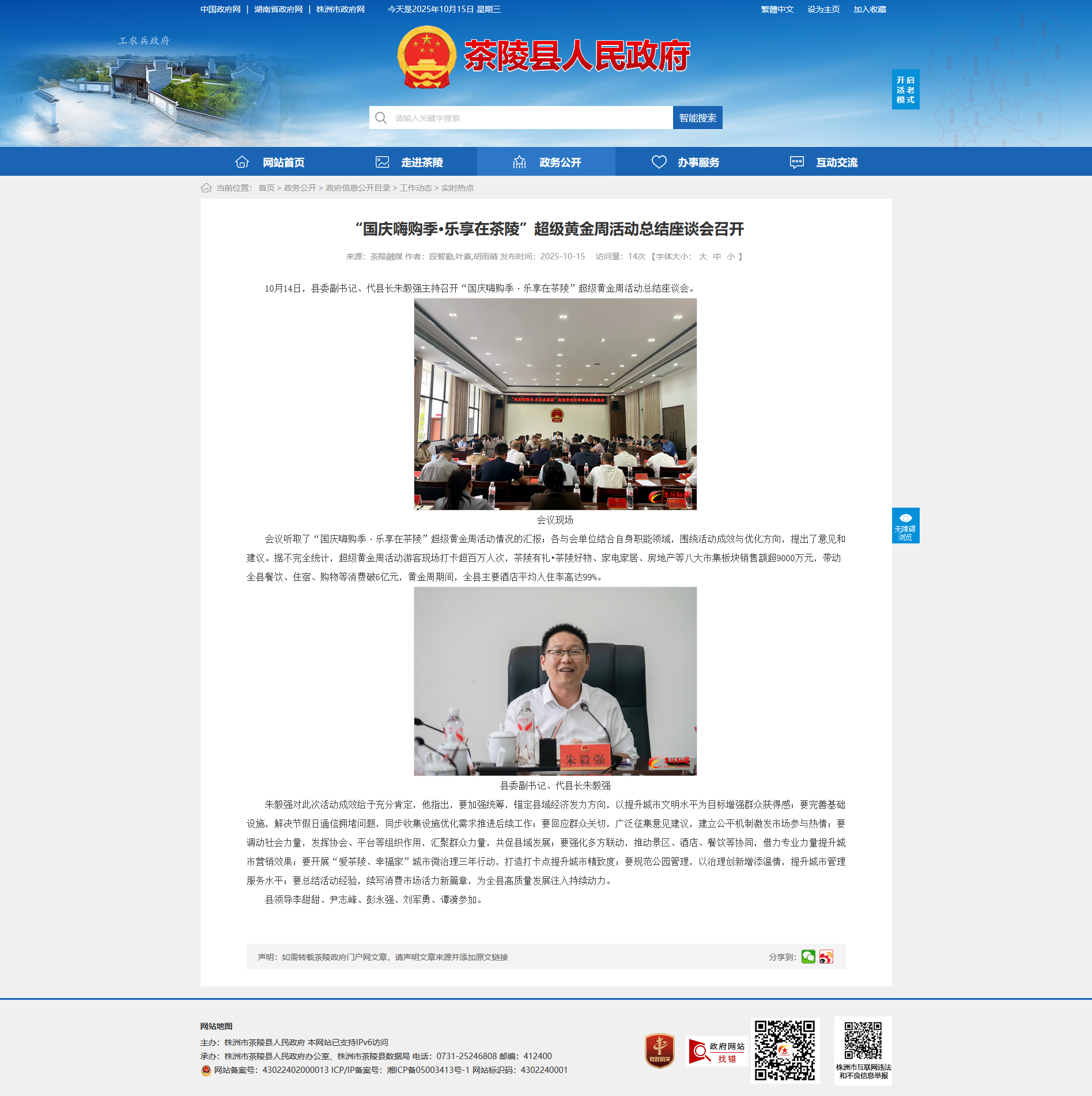 10月14日,县委副书记、代县长朱毅强主持召开“国庆嗨购季·乐享在茶陵”超级黄金周活动总结座谈会。