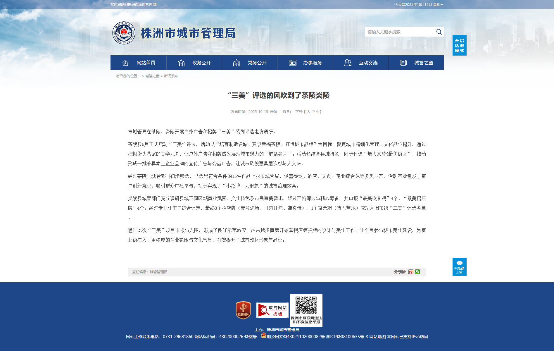 时间:2025-10-15 00:00:00 来源: 株洲市城市管理和综合执法局 来源截图