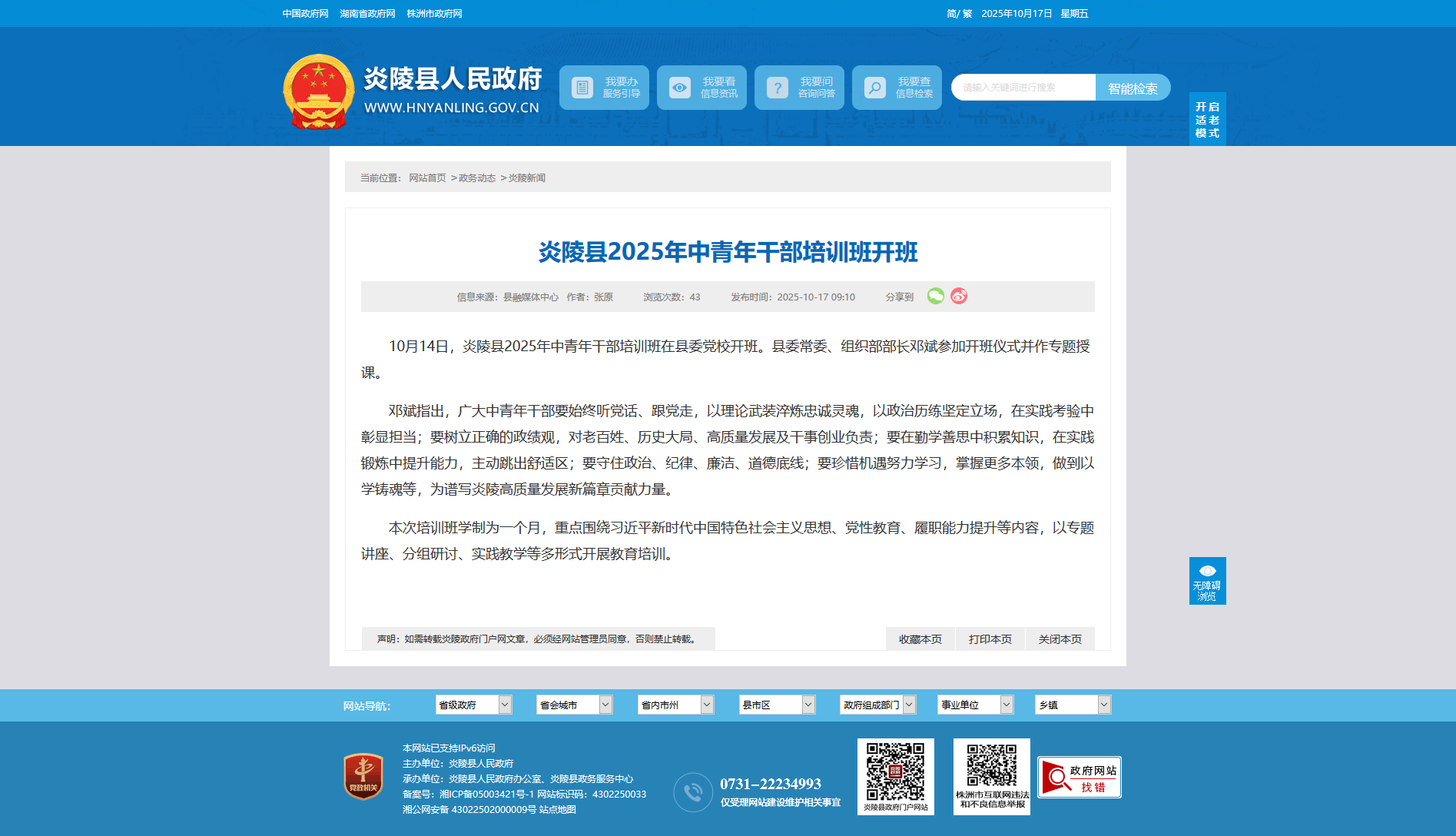 10月14日,炎陵县2025年中青年干部培训班在县委党校开班。县委常委、组织部部长邓斌参加开班仪式并作专题授课。