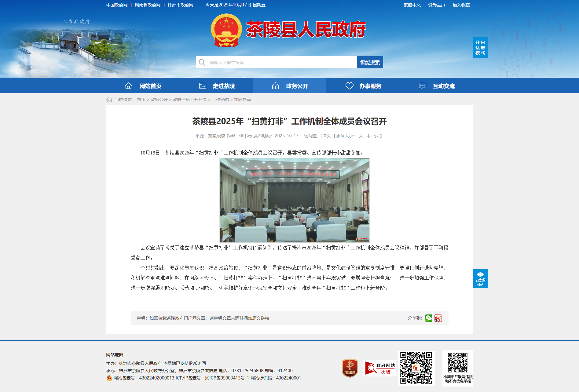 会议宣读了《关于建立茶陵县“扫黄打非”工作机制的通知》,传达了株洲市2025年“扫黄打非”工作机制全体成员会议精神,并部署了下阶段重点工作。