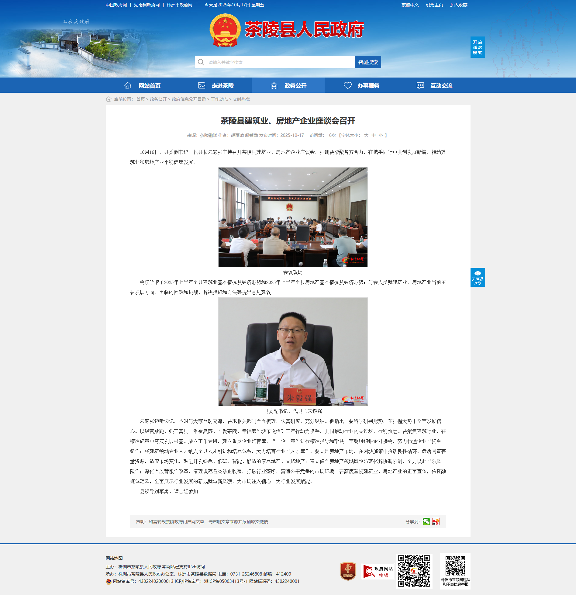 10月16日,县委副书记、代县长朱毅强主持召开茶陵县建筑业、房地产企业座谈会,强调要凝聚各方合力,在携手同行中共创发展新篇,推动建筑业和房地产业平稳健康发展。