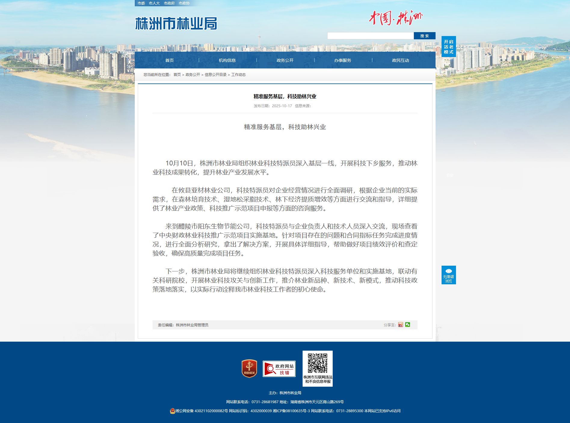 10月10日,株洲市林业局组织林业科技特派员深入基层一线,开展科技下乡服务,推动林业科技成果转化,提升林业产业发展水平。