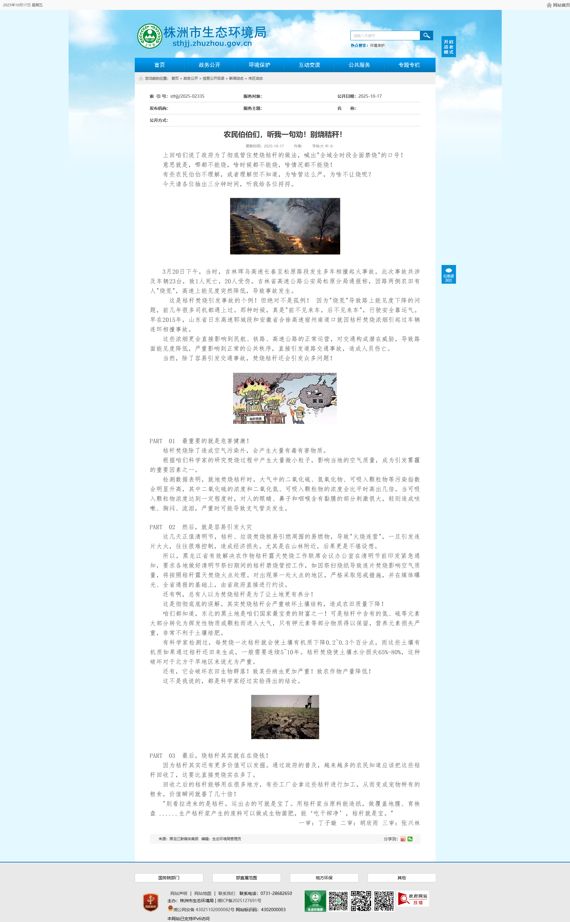 这些浓烟更会直接影响到民航、铁路、高速公路的正常运营,对交通构成潜在威胁,导致路面能见度降低,严重影响到正常的公共秩序,直接引发道路交通事故,造成人员伤亡。