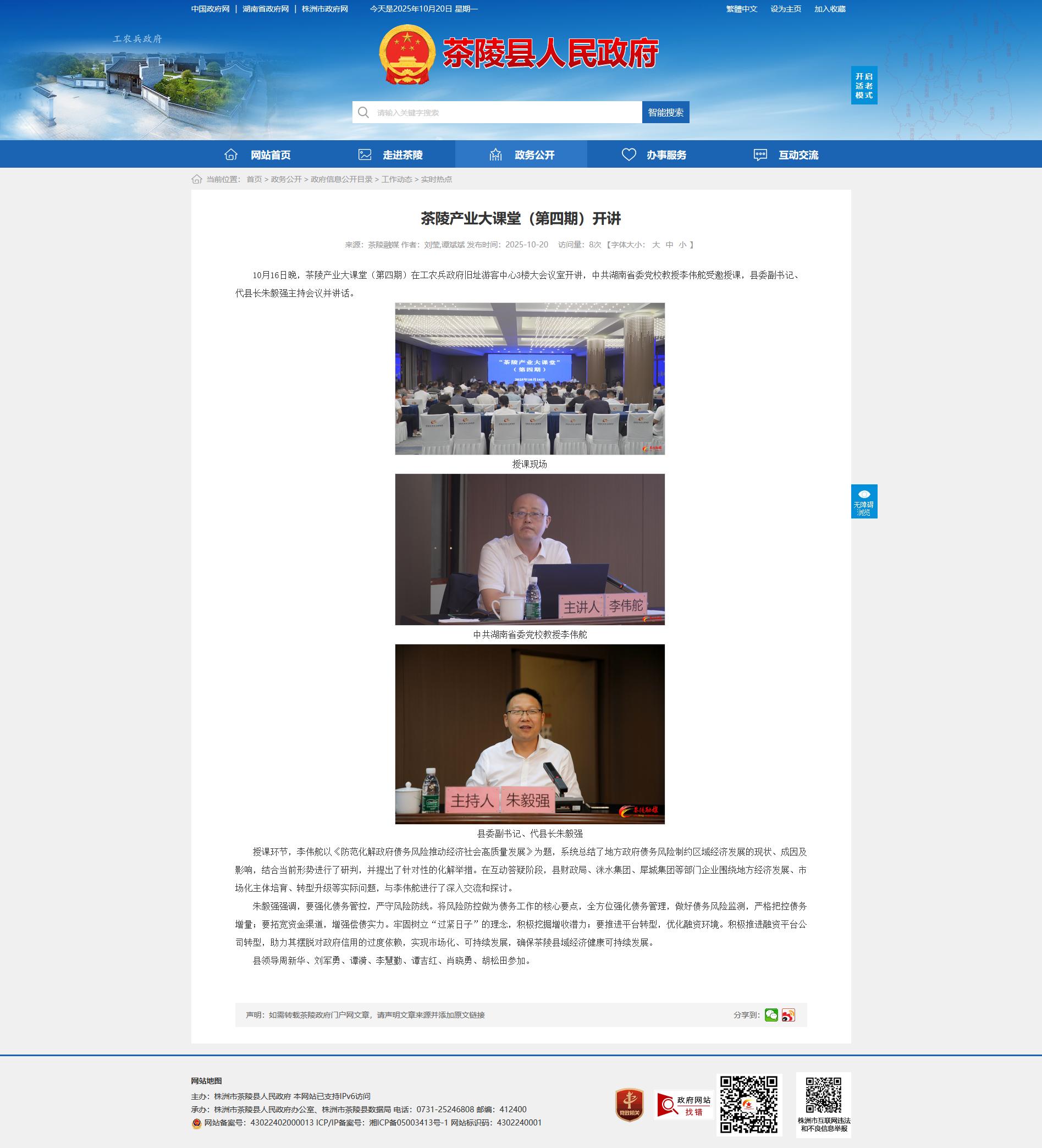 10月16日晚,茶陵产业大课堂(第四期)在工农兵政府旧址游客中心3楼大会议室开讲,中共湖南省委党校教授李伟舵受邀授课,县委副书记、代县长朱毅强主持会议并讲话。