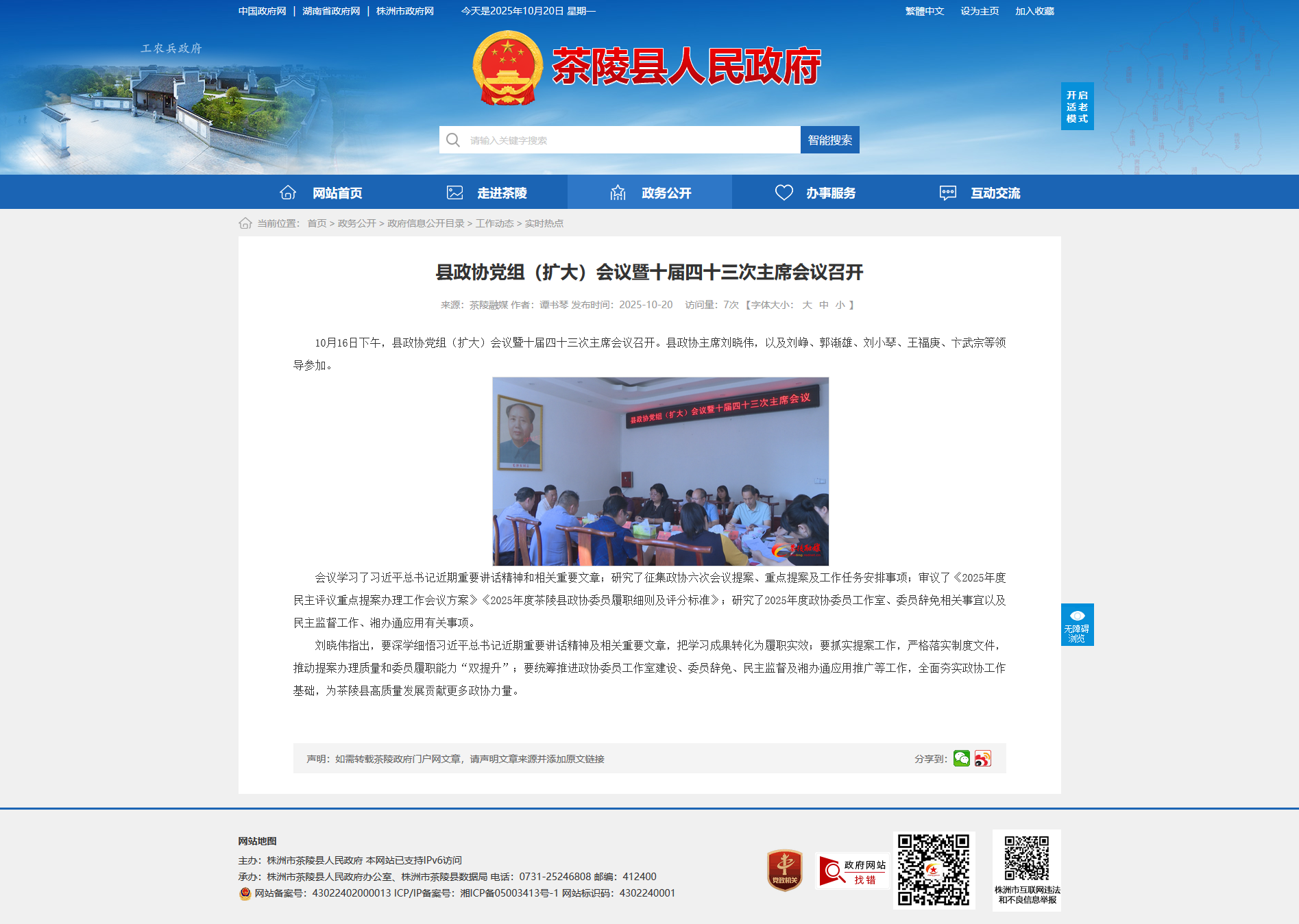 会议学习了习近平总书记近期重要讲话精神和相关重要文章;研究了征集政协六次会议提案、重点提案及工作任务安排事项;审议了《2025年度民主评议重点提案办理工作会议方案》《2025年度茶陵县政协委员履职细则及评分标准》;研究了2025年度政协委员工作室、委员辞免相关事宜以及民主监督工作、湘办通应用有关事项。