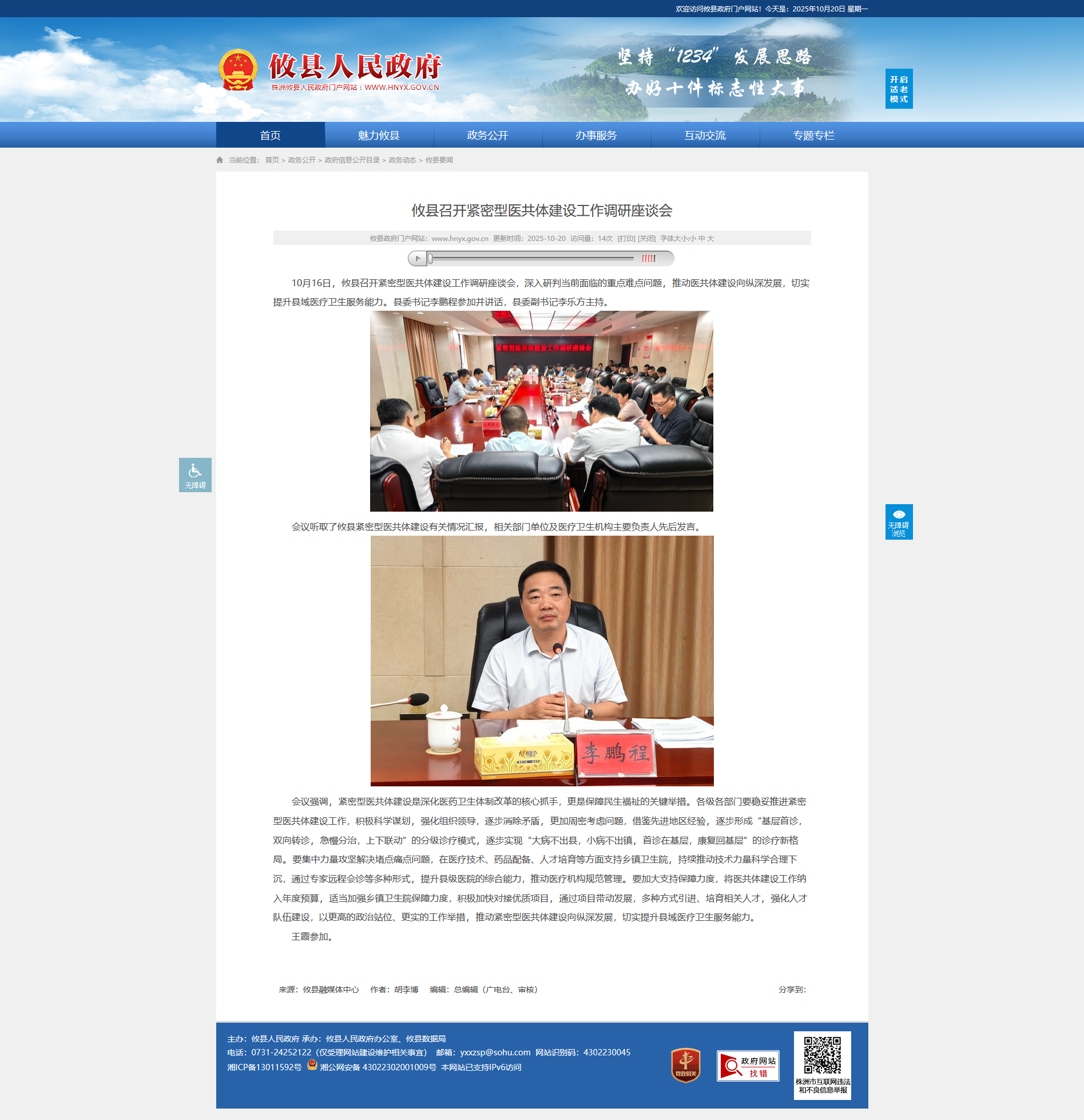 10月16日,攸县召开紧密型医共体建设工作调研座谈会,深入研判当前面临的重点难点问题,推动医共体建设向纵深发展,切实提升县域医疗卫生服务能力。县委书记李鹏程参加并讲话,县委副书记李乐方主持。