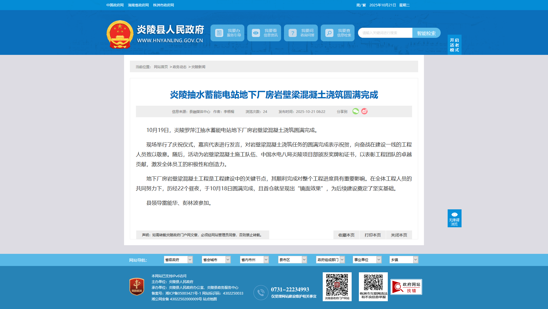 10月19日,炎陵罗萍江抽水蓄能电站地下厂房岩壁梁混凝土浇筑圆满完成。