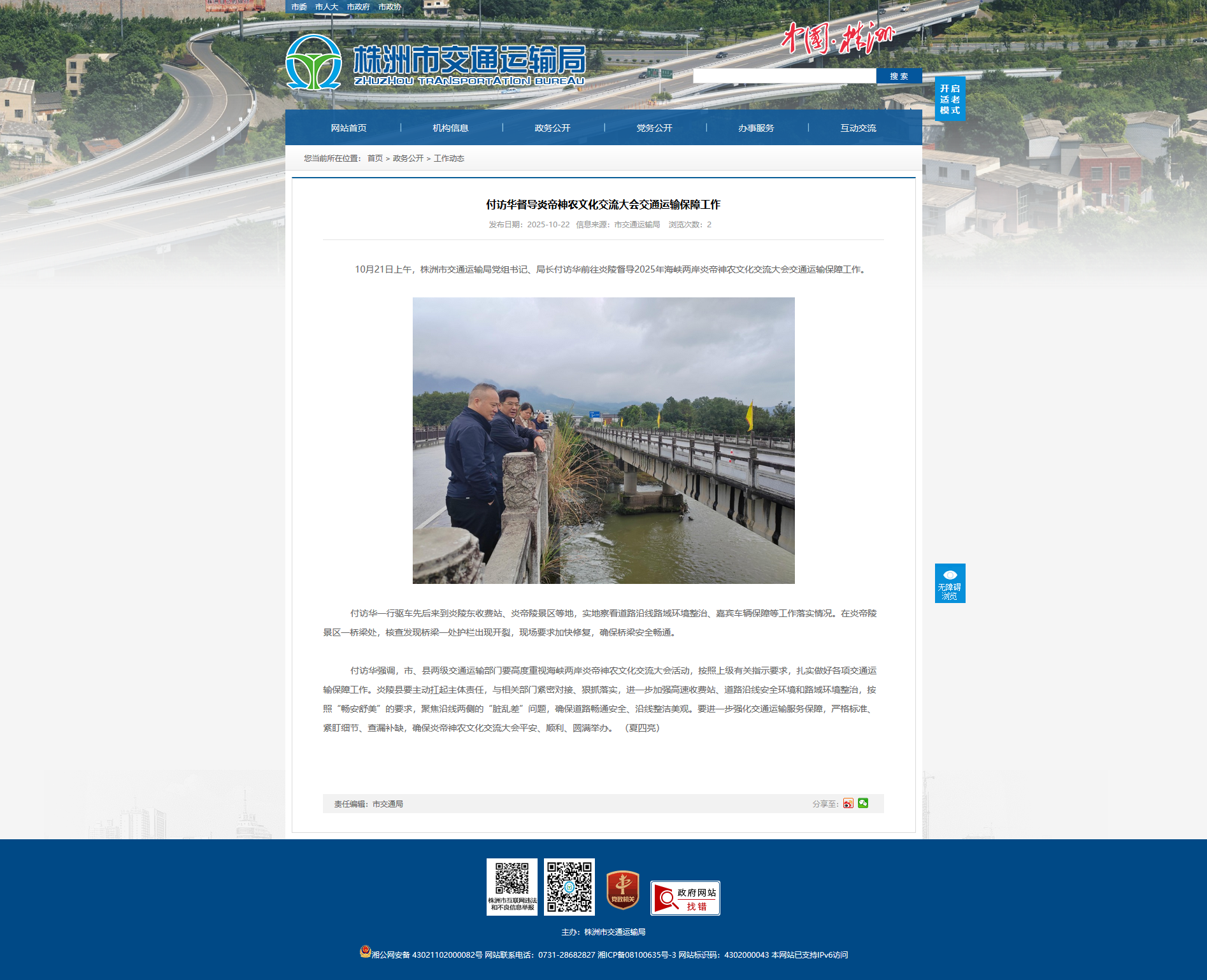 10月21日上午,株洲市交通运输局党组书记、局长付访华前往炎陵督导2025年海峡两岸炎帝神农文化交流大会交通运输保障工作。