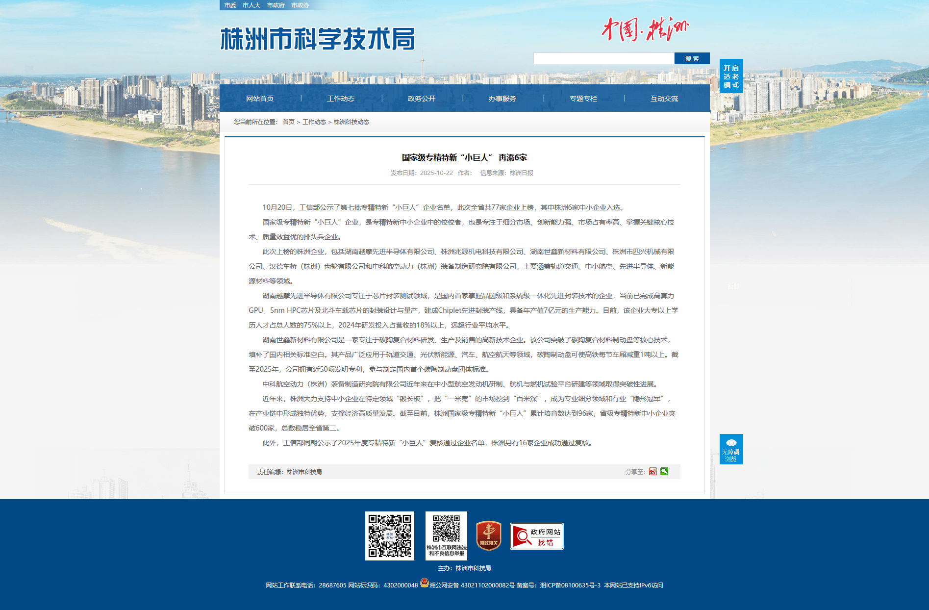 此外,工信部同期公示了2025年度专精特新“小巨人”复核通过企业名单,株洲另有16家企业成功通过复核。