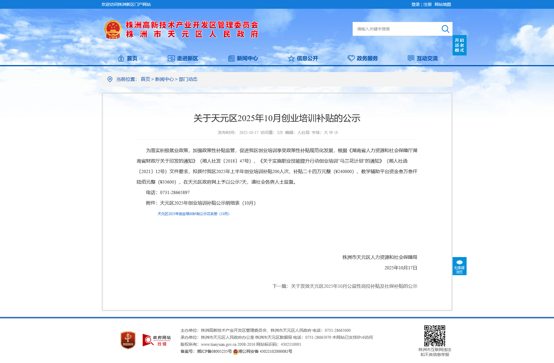 时间:2025-10-17 15:06:29 来源: 株洲市天元区人民政府 来源截图