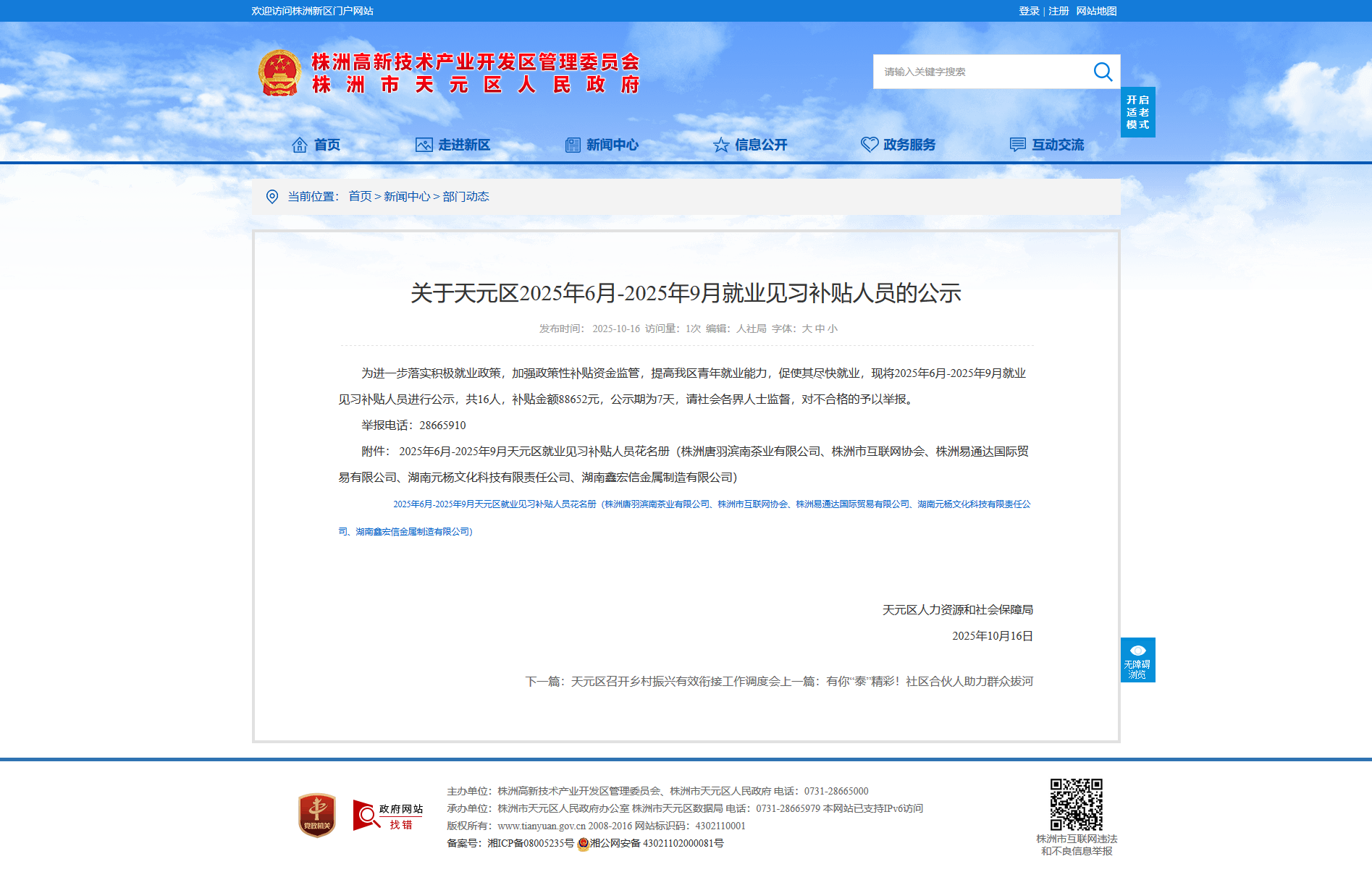 时间:2025-10-16 15:09:43 来源: 株洲市天元区人民政府 来源截图