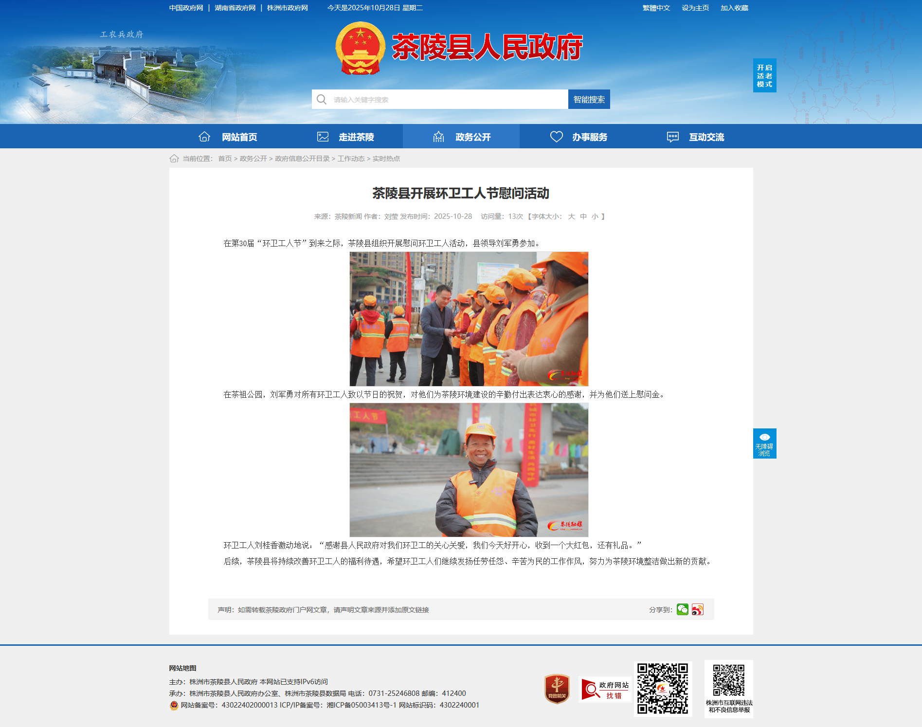 在第30届“环卫工人节”到来之际,茶陵县组织开展慰问环卫工人活动,县领导刘军勇参加。