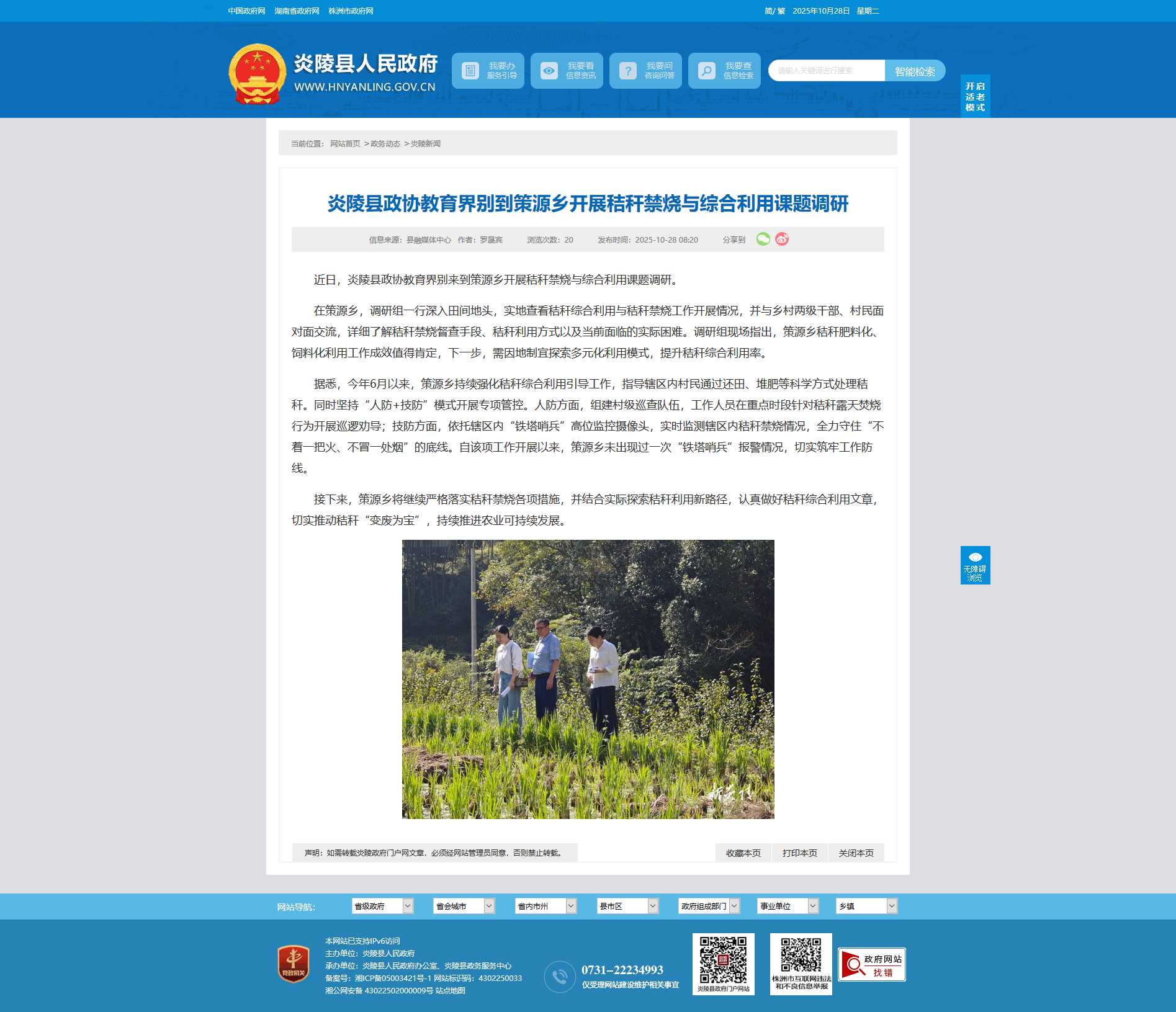 近日,炎陵县政协教育界别来到策源乡开展秸秆禁烧与综合利用课题调研。