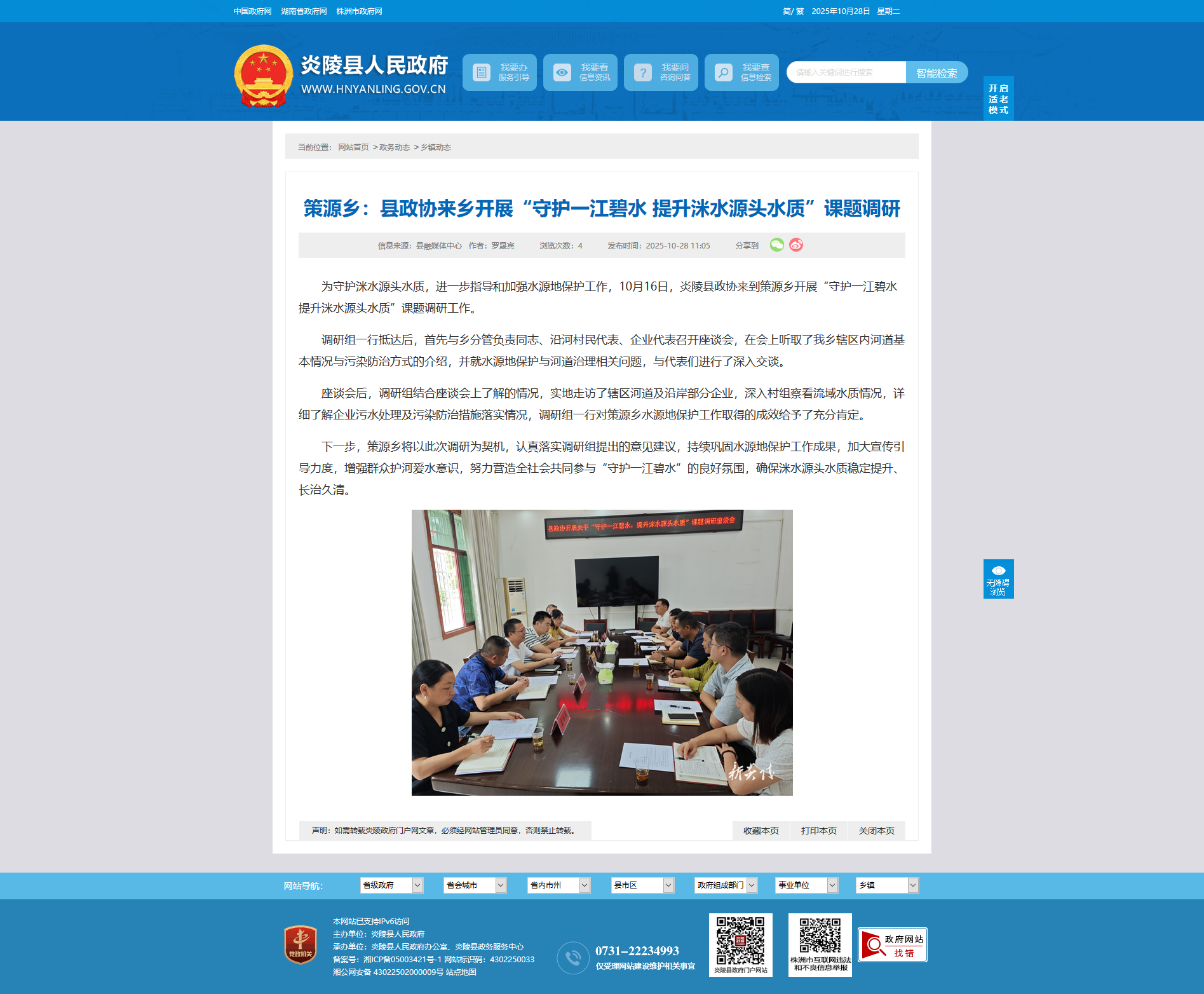为守护洣水源头水质,进一步指导和加强水源地保护工作,10月16日,炎陵县政协来到策源乡开展“守护一江碧水 提升洣水源头水质”课题调研工作。