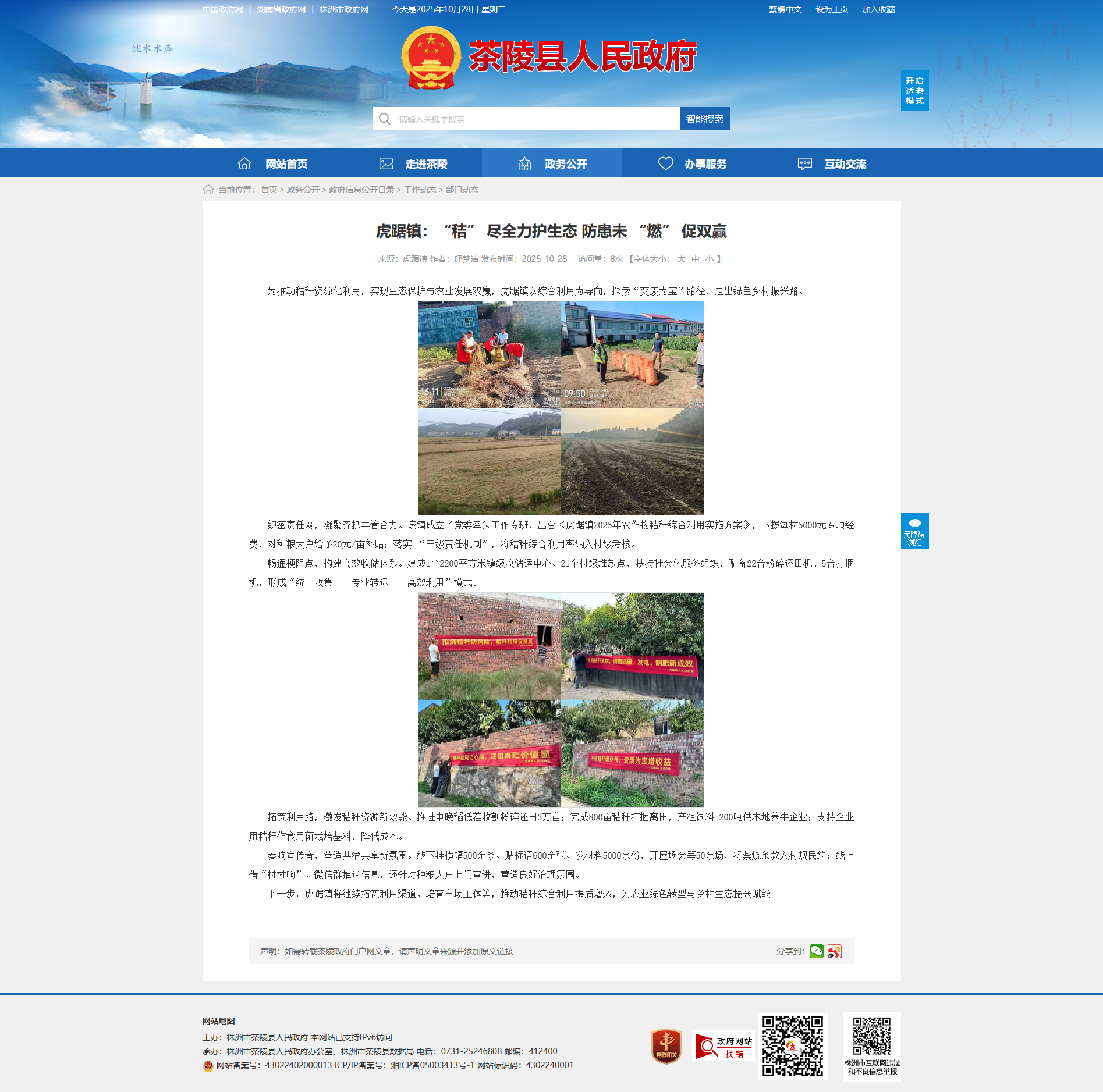 织密责任网,凝聚齐抓共管合力。该镇成立了党委牵头工作专班,出台《虎踞镇2025年农作物秸秆综合利用实施方案》,下拨每村5000元专项经费,对种粮大户给予20元/亩补贴;落实 “三级责任机制”,将秸秆综合利用率纳入村级考核。