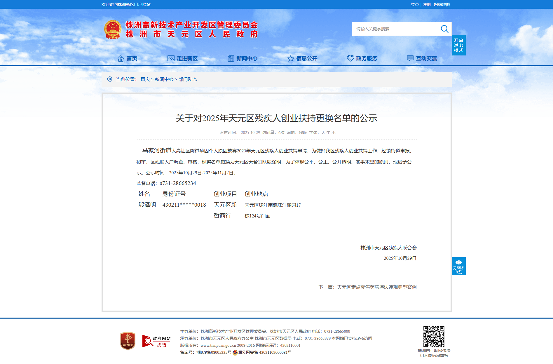 时间:2025-10-29 11:05:00 来源: 株洲市天元区人民政府 来源截图