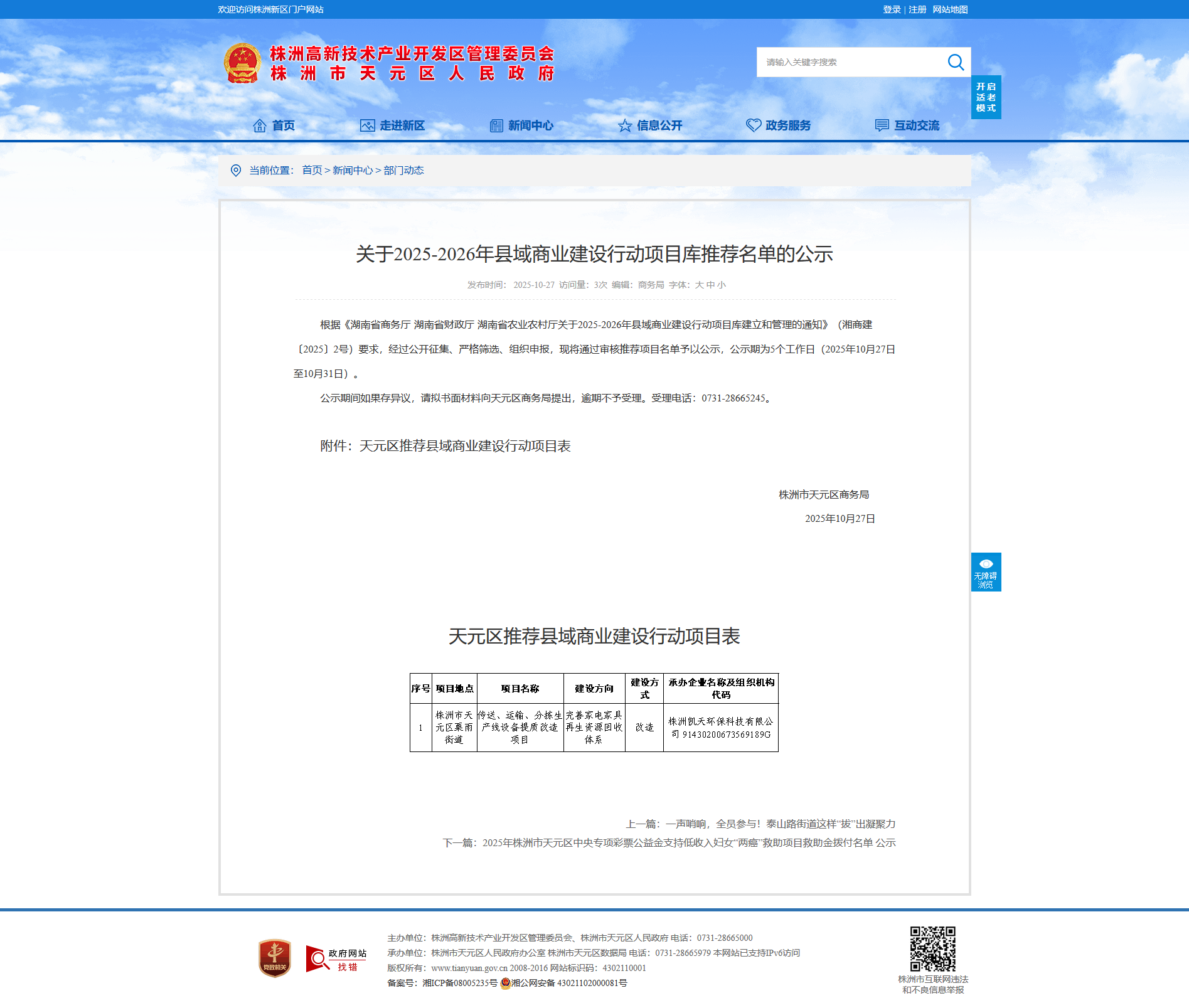 时间:2025-10-27 16:55:03 来源: 株洲市天元区人民政府 来源截图