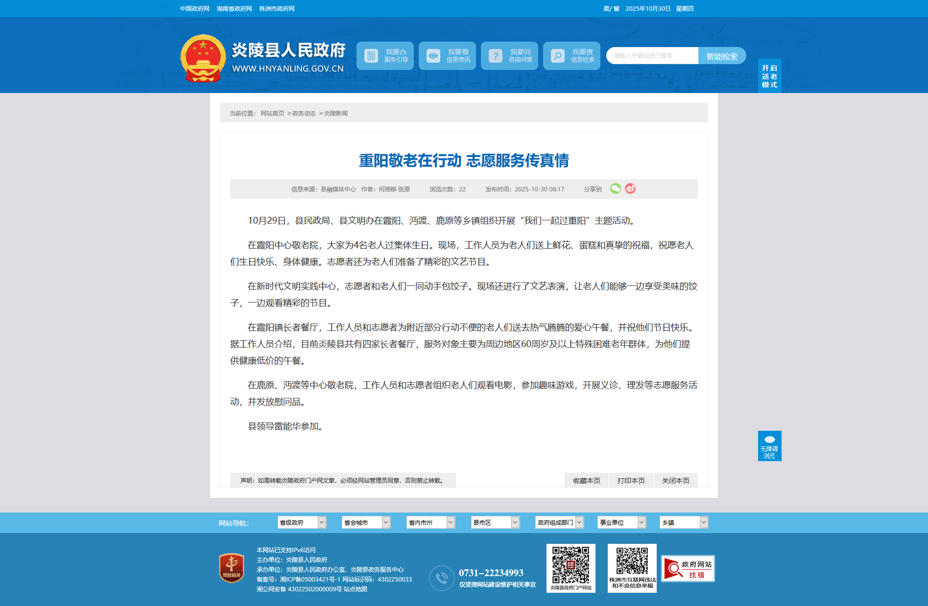 在霞阳镇长者餐厅,工作人员和志愿者为附近部分行动不便的老人们送去热气腾腾的爱心午餐,并祝他们节日快乐。据工作人员介绍,目前炎陵县共有四家长者餐厅,服务对象主要为周边地区60周岁及以上特殊困难老年群体,为他们提供健康低价的午餐。