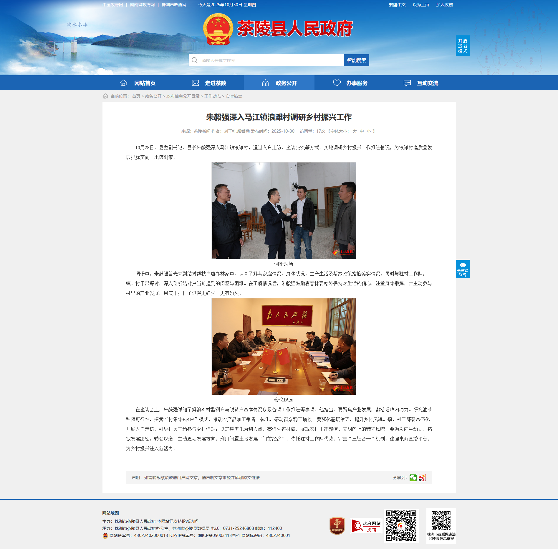 10月28日,县委副书记、县长朱毅强深入马江镇浪滩村,通过入户走访、座谈交流等方式,实地调研乡村振兴工作推进情况,为浪滩村高质量发展把脉定向、出谋划策。