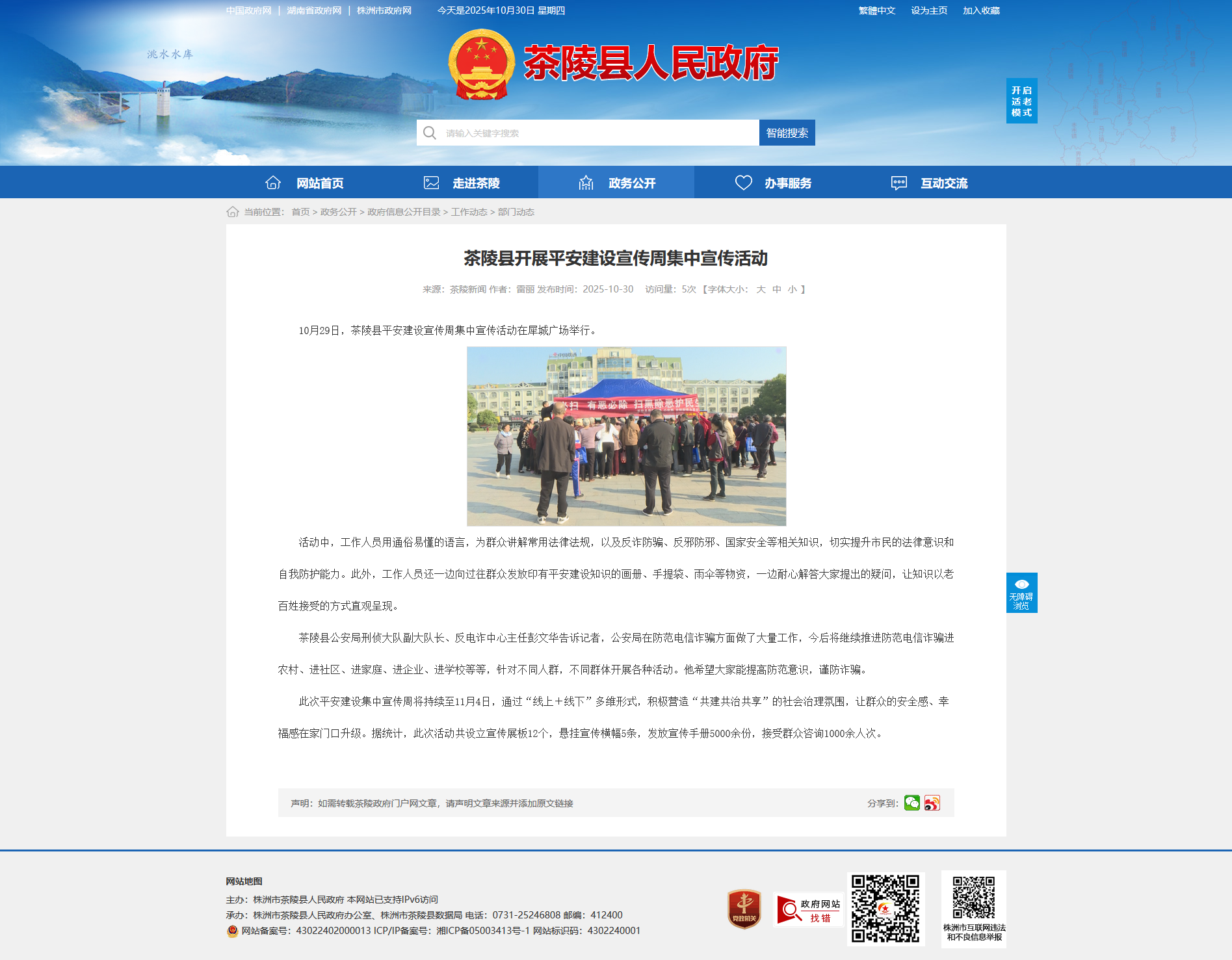 10月29日,茶陵县平安建设宣传周集中宣传活动在犀城广场举行。