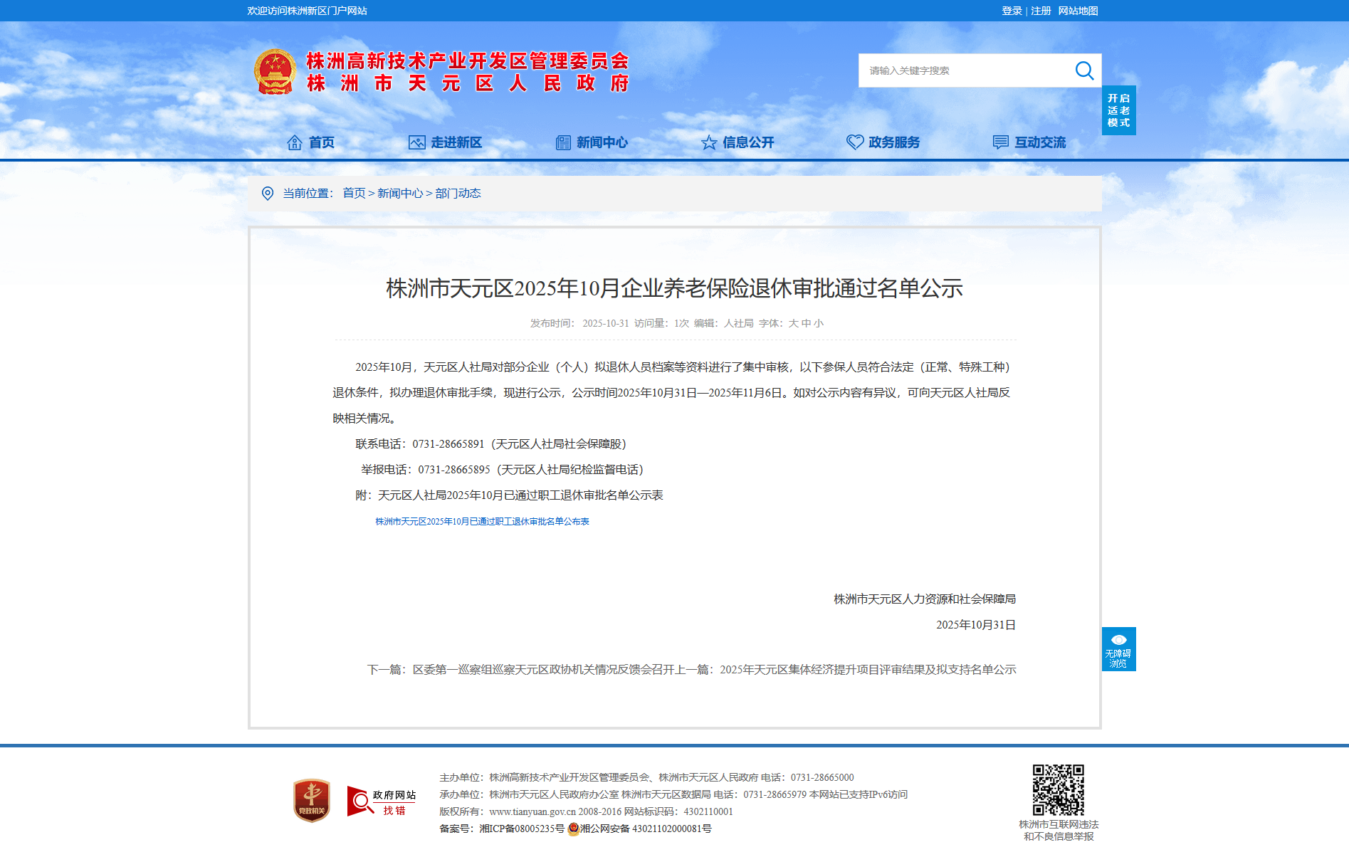 时间:2025-10-31 17:49:40 来源: 株洲市天元区人民政府 来源截图