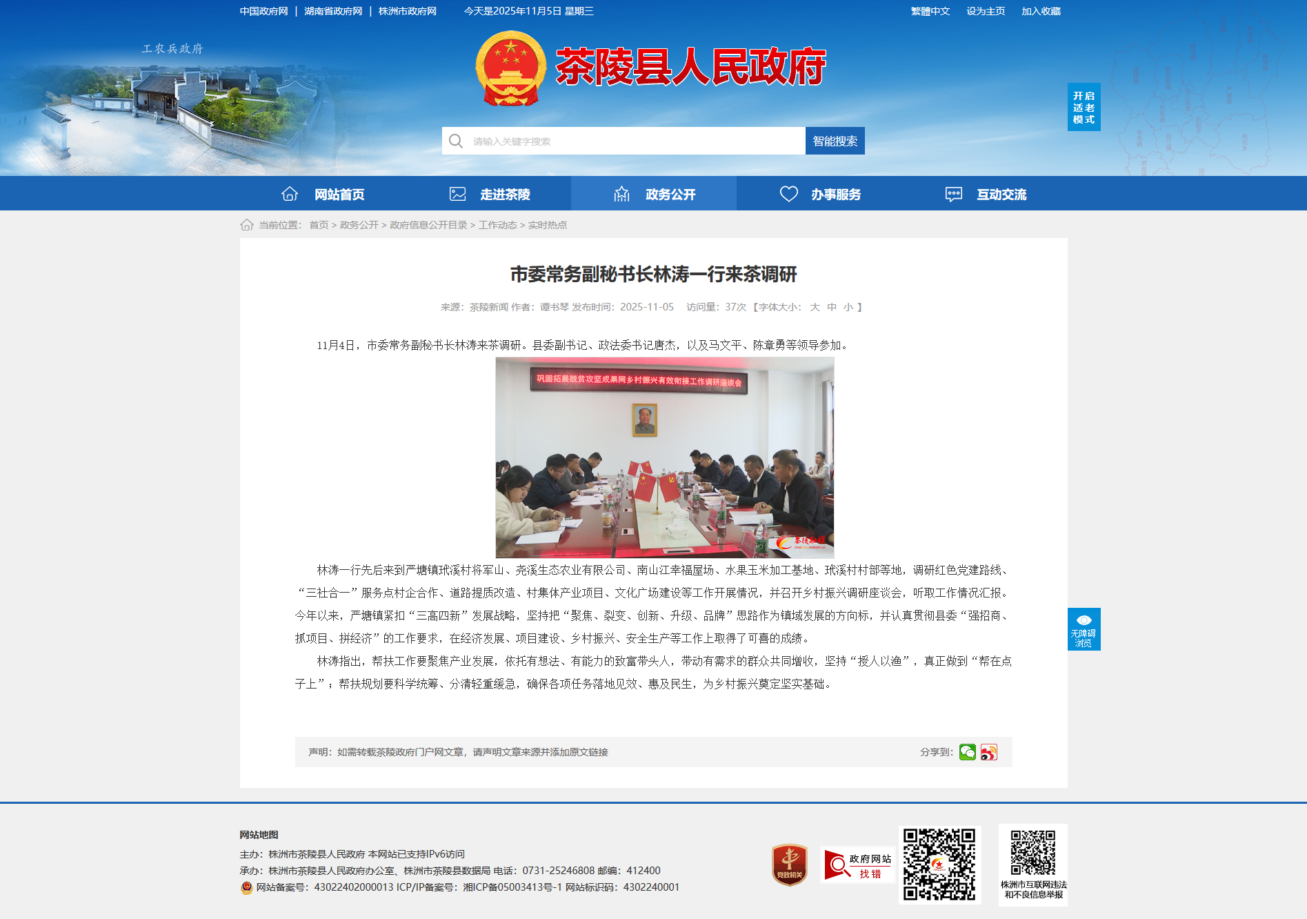 11月4日,市委常务副秘书长林涛来茶调研。县委副书记、政法委书记唐杰,以及马文平、陈章勇等领导参加。
