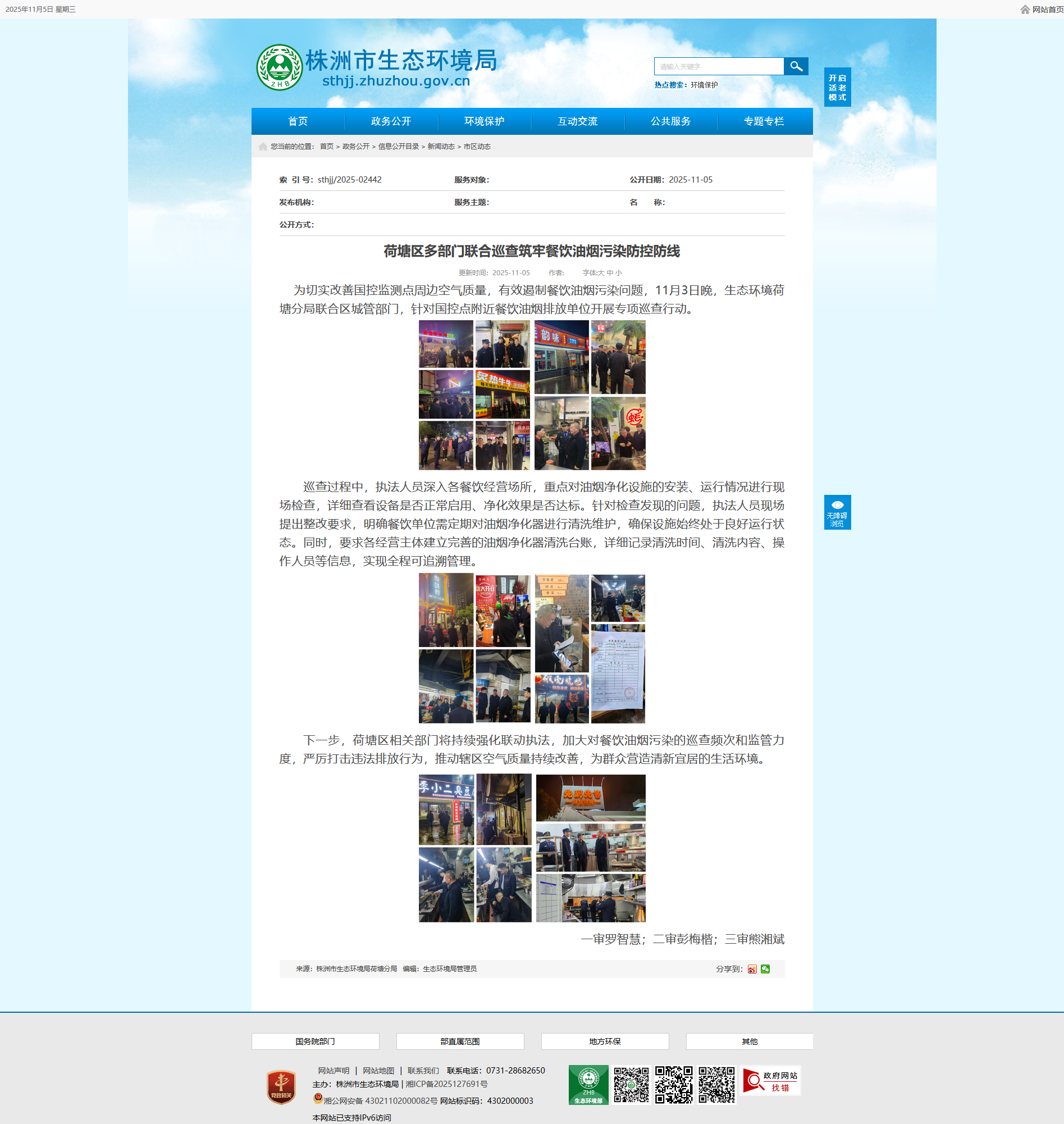 为切实改善国控监测点周边空气质量,有效遏制餐饮油烟污染问题,11月3日晚,生态环境荷塘分局联合区城管部门,针对国控点附近餐饮油烟排放单位开展专项巡查行动。