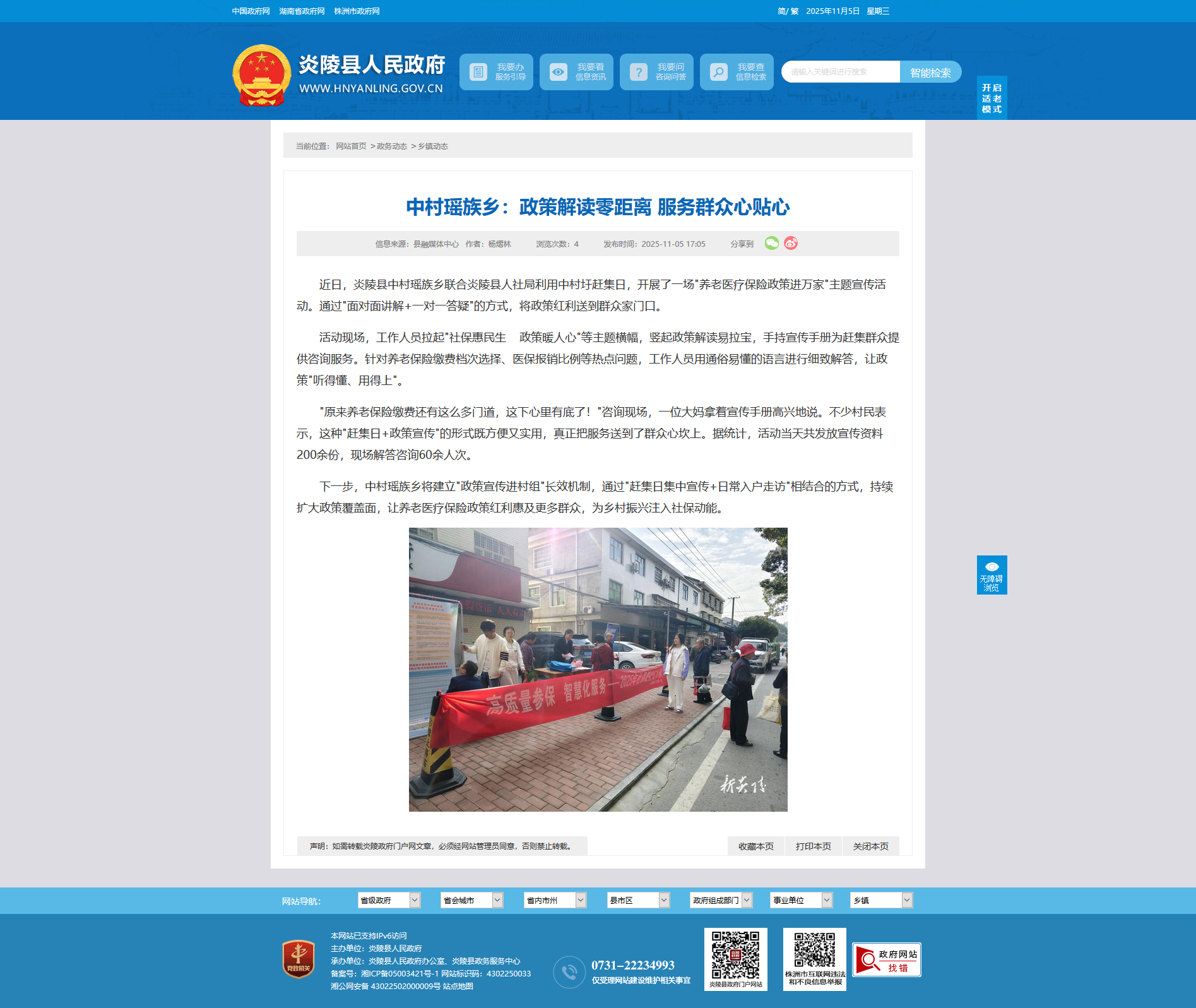 近日,炎陵县中村瑶族乡联合炎陵县人社局利用中村圩赶集日,开展了一场"养老医疗保险政策进万家"主题宣传活动。通过"面对面讲解 一对一答疑"的方式,将政策红利送到群众家门口。