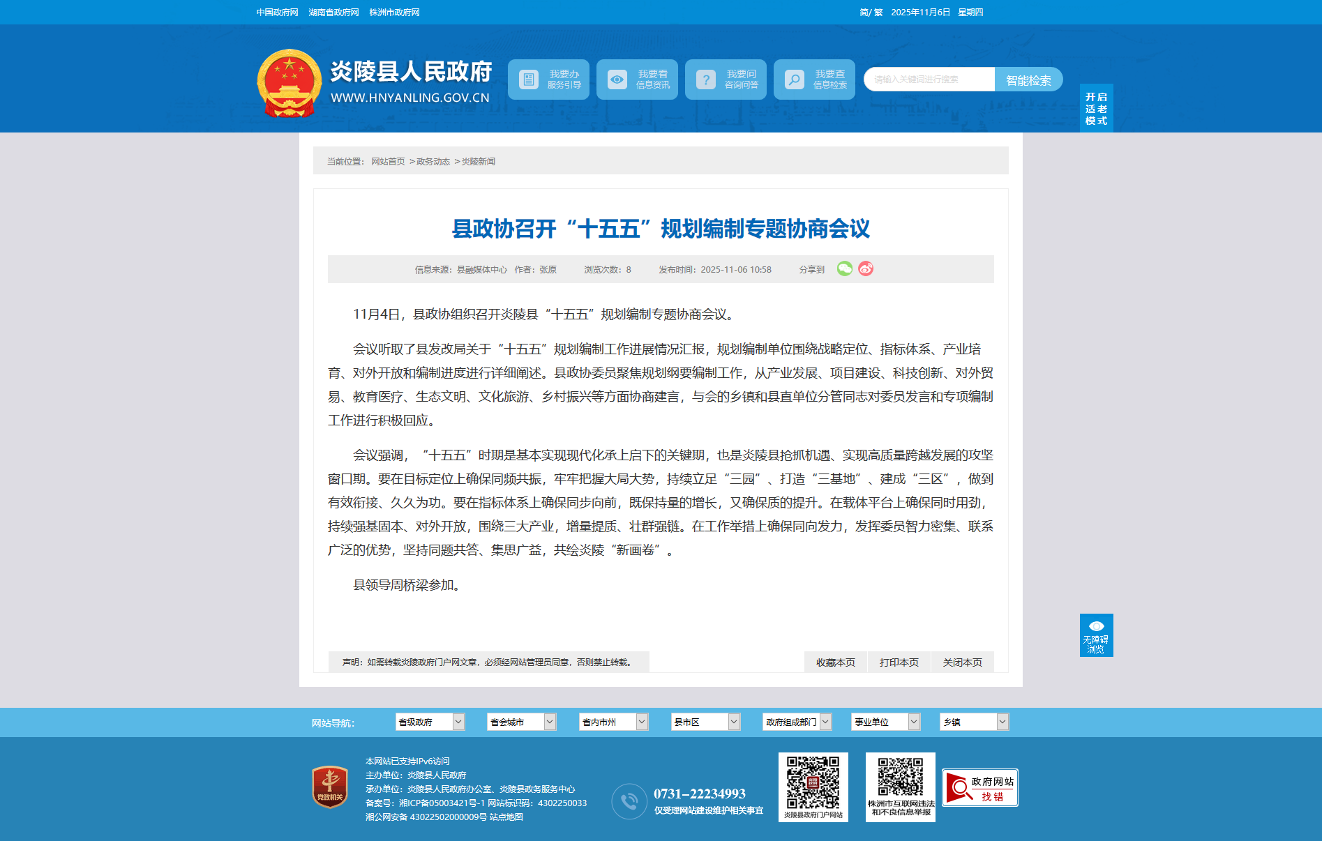 11月4日,县政协组织召开炎陵县“十五五”规划编制专题协商会议。